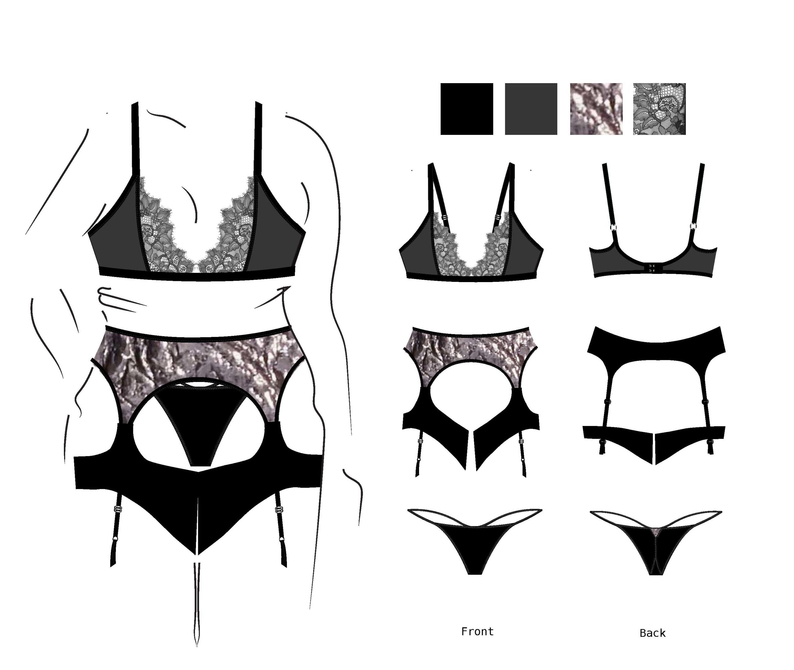 [ 01 ] Look 1 features a supportive bralette designed for bigger busts along with my chaffing prevention thigh garter and a thong.