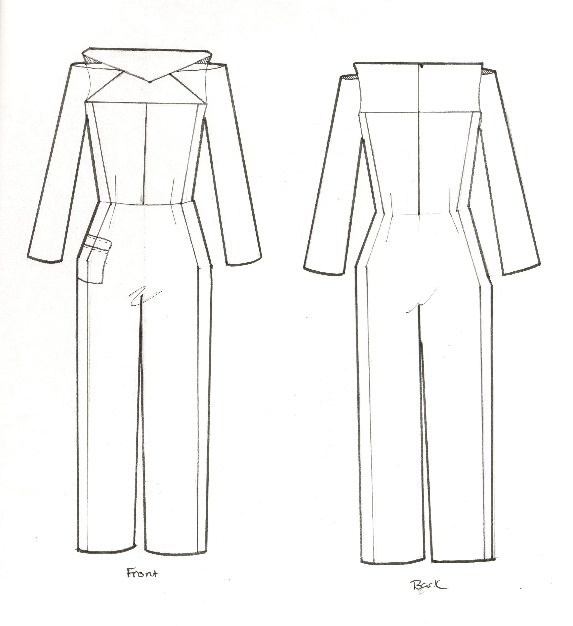 [ 04 ] Hand-drawn flat of wide-leg jumpsuit