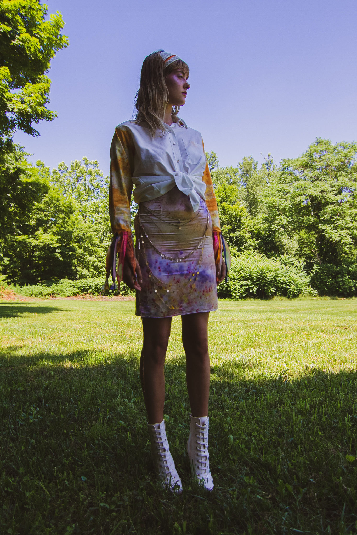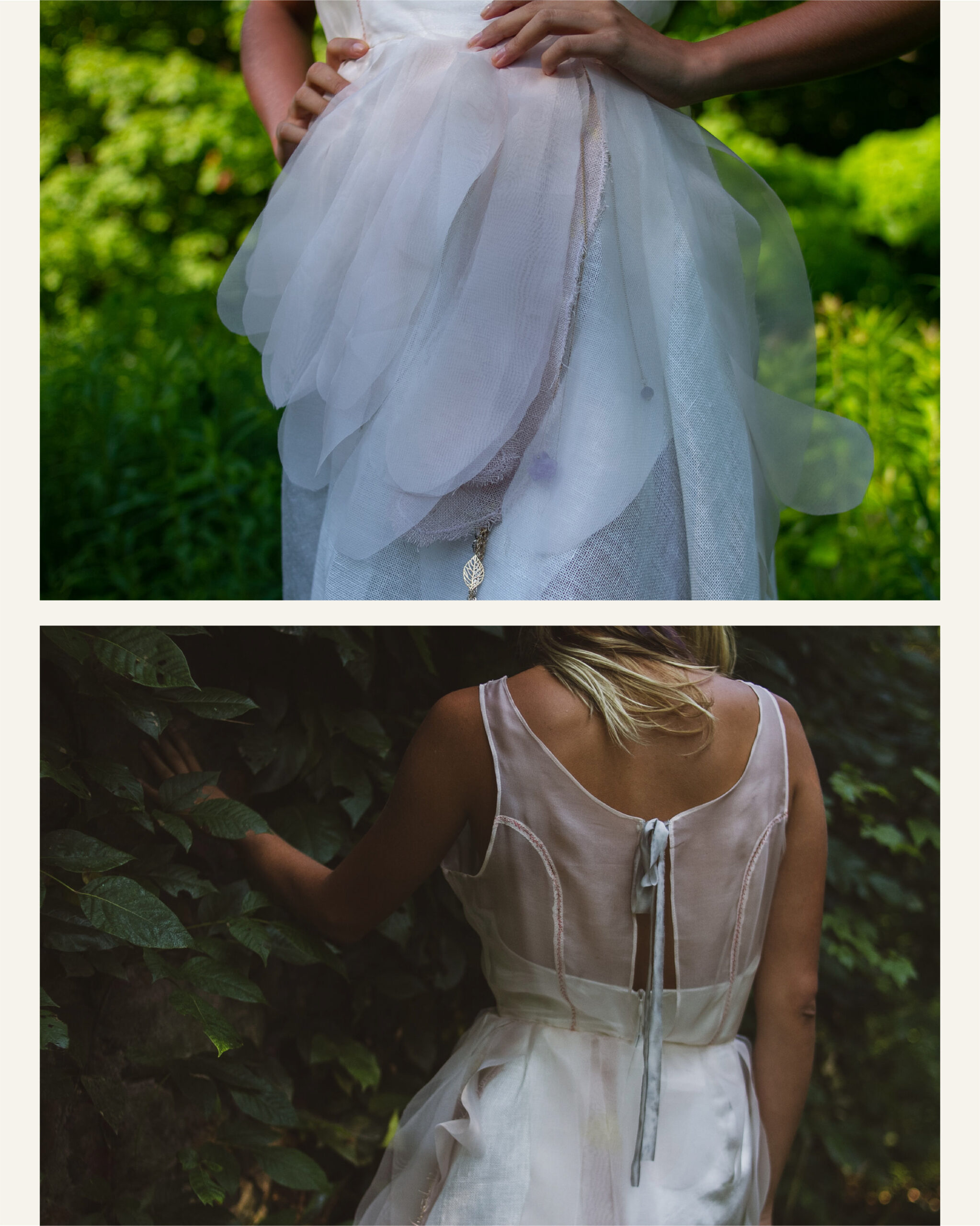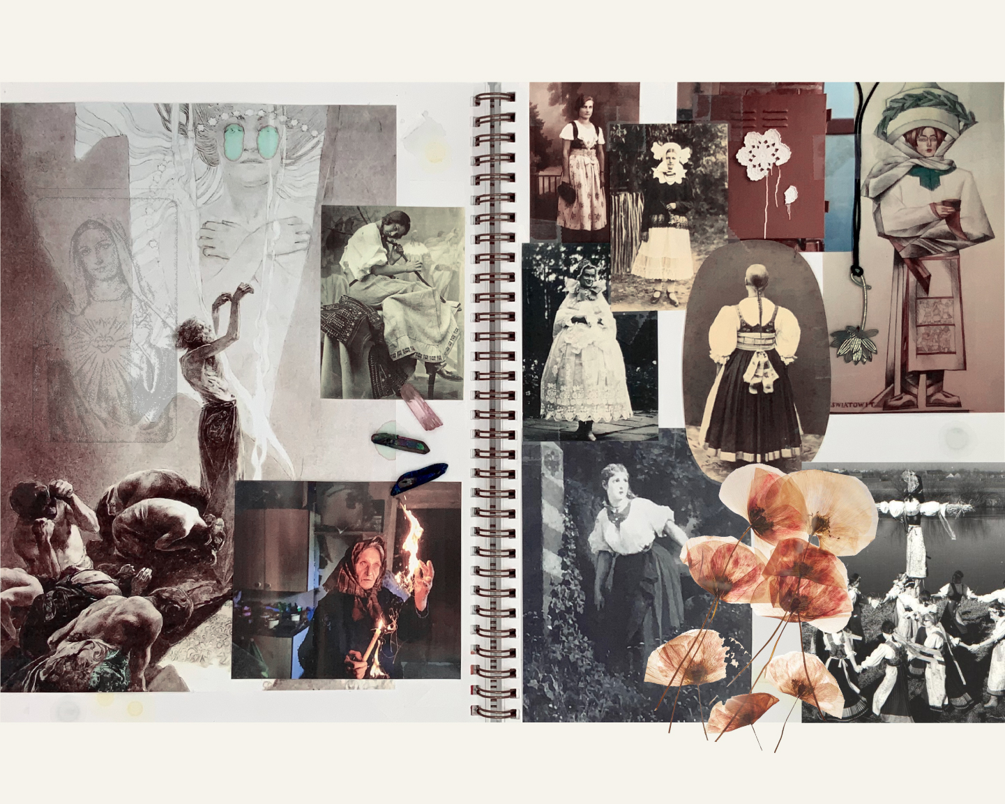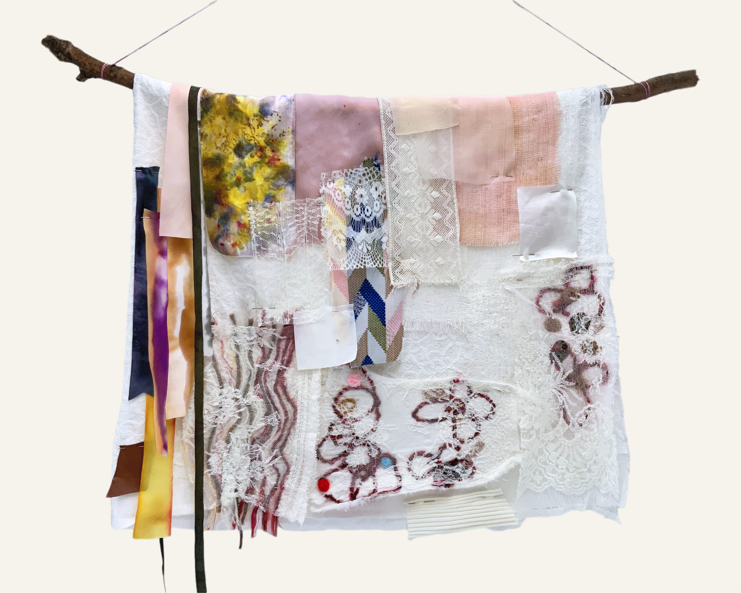 [ 03 ] Fabrication & Textile Manipulation I Including various methods of natural hand dyeing of silk satin, silk organza, and linen mesh; felted silk&hemp satin blend, cotton lace, wool threads, and beads in different variations; Polish vintage cotton needle lace from the 1930s