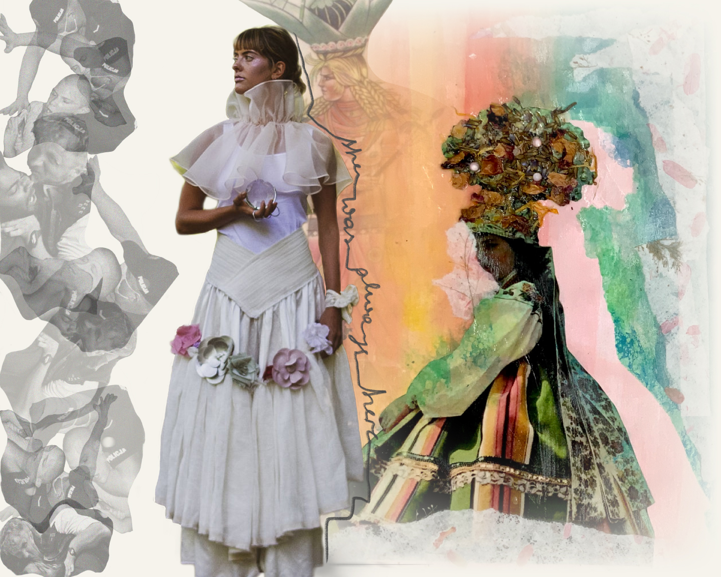 [ 05 ] Mood Artwork I Mixed-Media: digital and paper collage; gel medium tranfer; watercolors; dried flowers; and gems collage