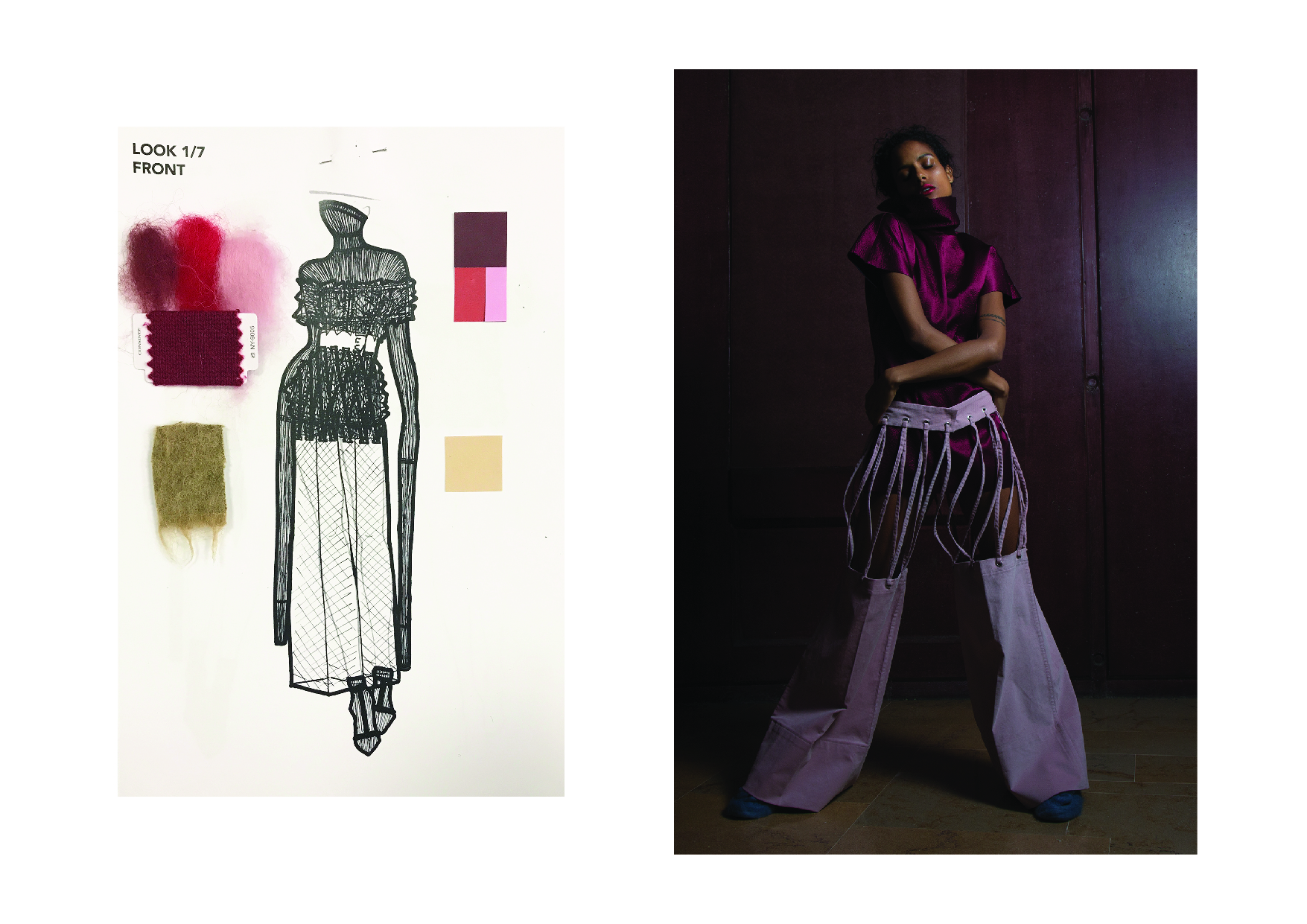 [ 04 ] Look 1 Process Sketch/Materiality and Photoshoot Image