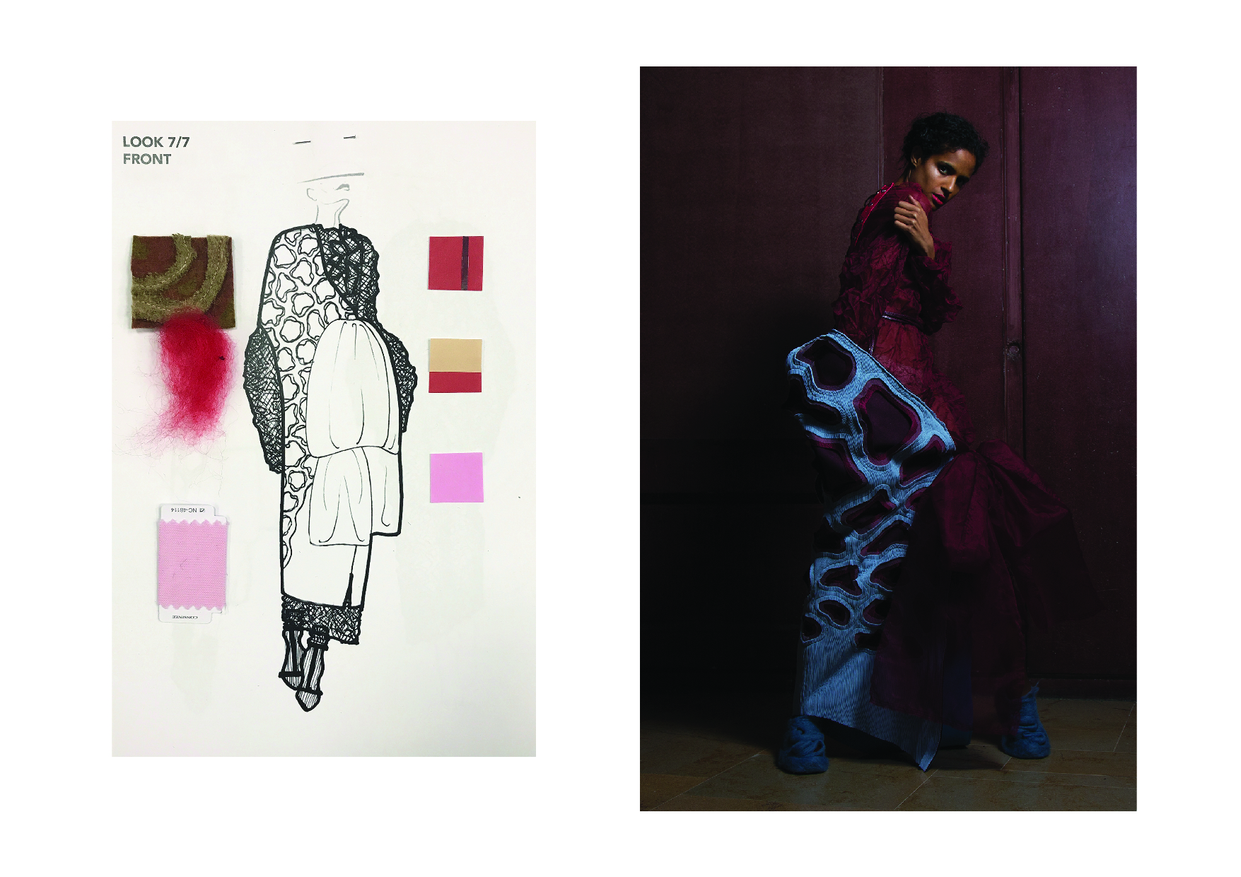 [ 012 ] Look 7 Process Sketch/Materiality and Photoshoot Image