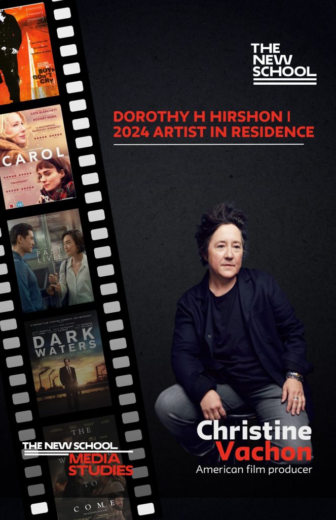 The 2024 Hirshon Artist in Residence, Academy Award nominated producer, Christine Vachon, hosted a public event featuring her work and engaged in a discussion with the School of Media Studies Dean Vladan Nikolic. She also held two master classes for Media Studies Students.