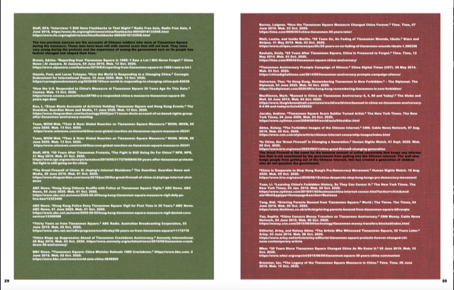 These questions are what drove the group to create this fact book and virtual exhibition about the Tiananmen Square Protests and Massacre, something that as Tessa points out, is an “episode in history that remains largely unknown to my generation.” This project is important on many levels, as it demonstrates how uniquely art and design education is positioned at Parsons, as well as the impact of our students, even when scattered across the world.