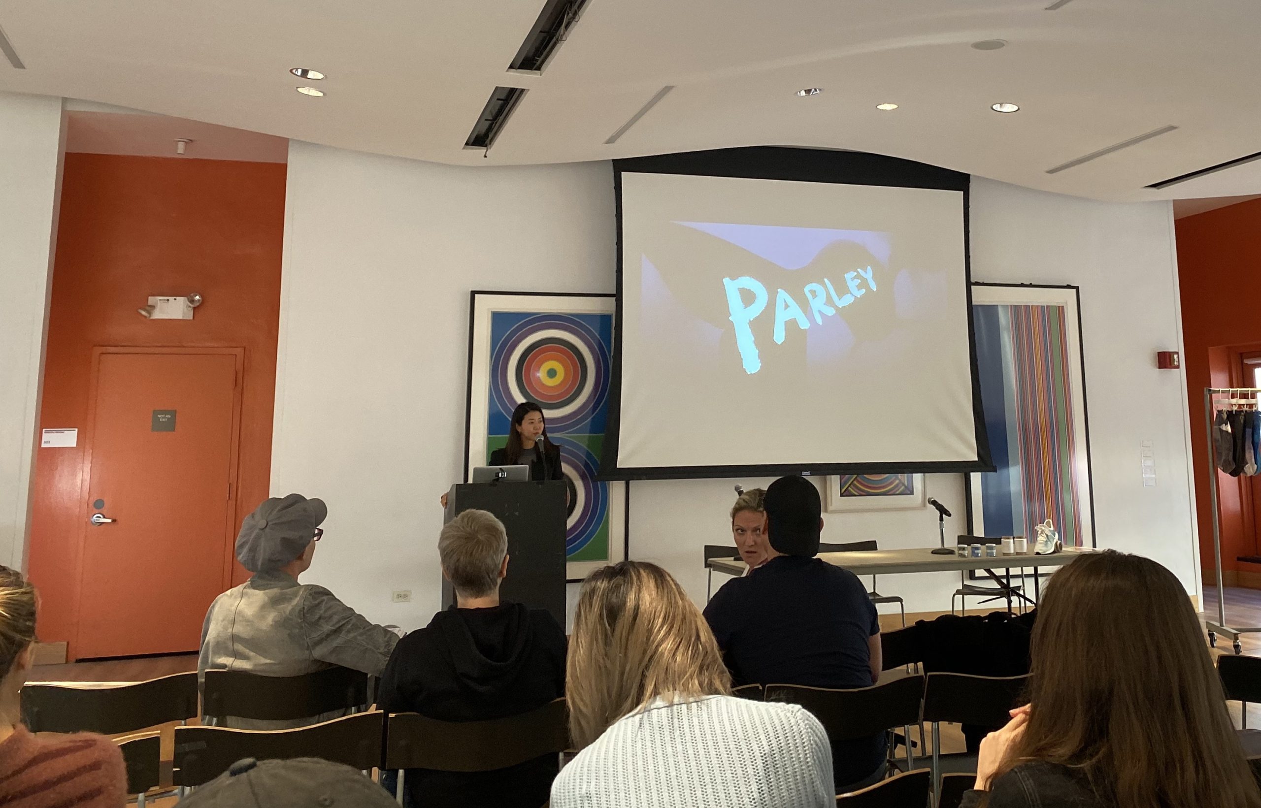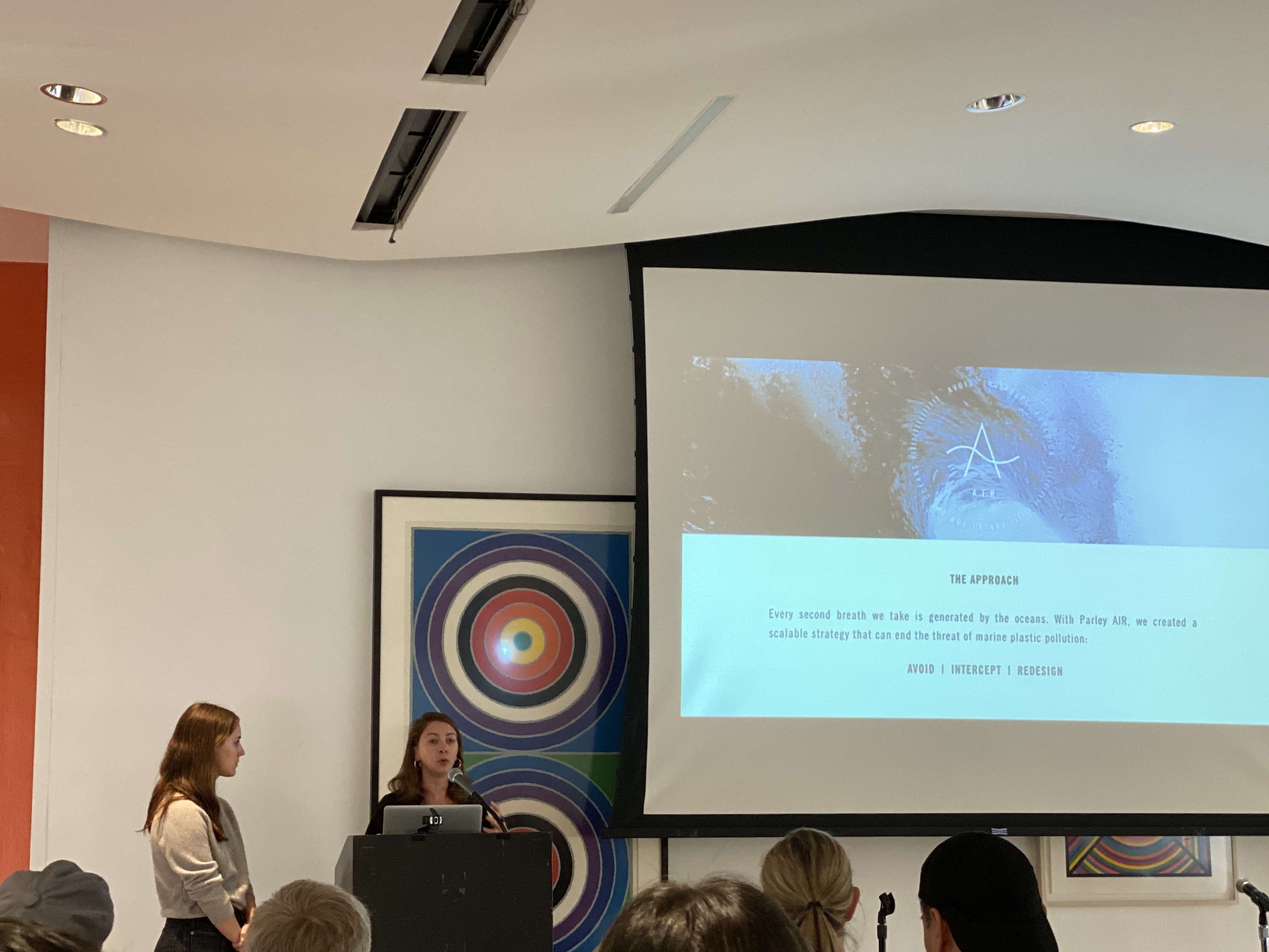 On October 23rd in Wollman Hall, First Year faculty member Beau Rhee invited the organization Parley for the Oceans whose members spoke with Sustainable Systems about their Ocean Plastics AIR (Avoid Intercent Redesign) materials. The conference was design focused, and Parley spoke about their large-scale collaborations with Adidas and brands like Helmut Lang and Proenza Schouler. Parley take plastic waste from the ocean and have a supply chain where they upcycle it, essentially to hi-end material. Beau’s Sustainable Systems inflection (the lens through which sustainability is taught in the course) is “Materials” and so the work that Parley are doing was a great link for students.