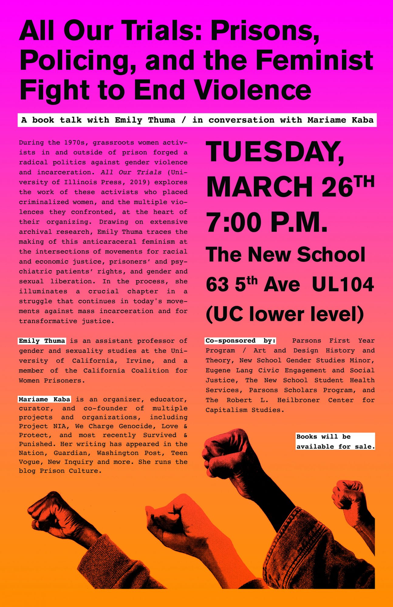 Book talk and conversation: All Our Trials: Prisons, Policing, and the Feminist Fight to End Violence "A Parsons First Year Program co-sponsored event"