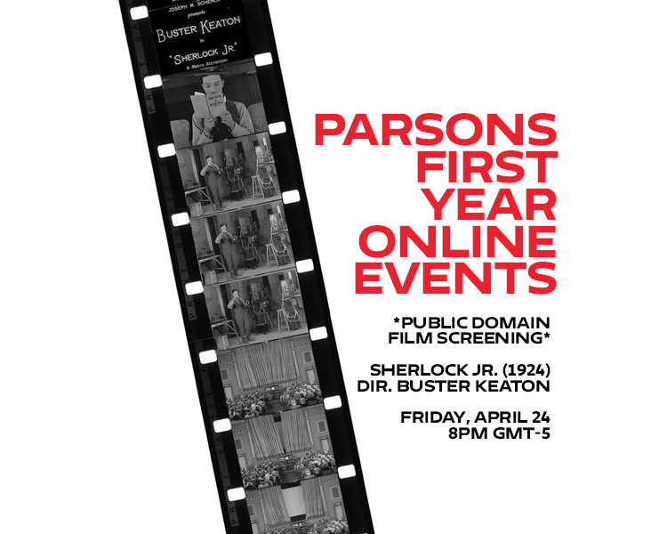 Parsons First Year Online Events "Public Domain Film Screening of Buster Keaton's Sherlock Jr."