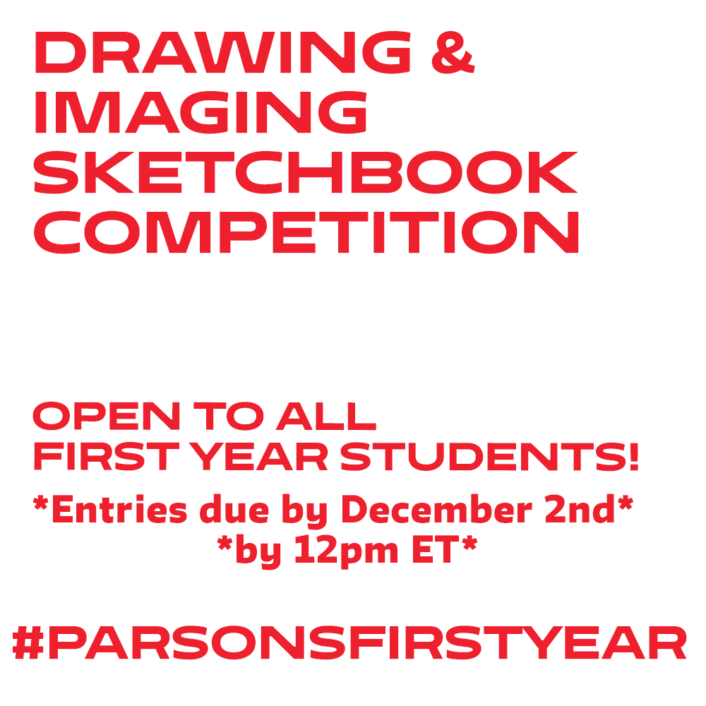 Don’t forget about the Drawing & Imaging Sketchbook Competition open to all First Year students! A compilation video of all entries will be exhibited at Parsons. Entries must be received by December 2nd, by 12pm ET. To enter: