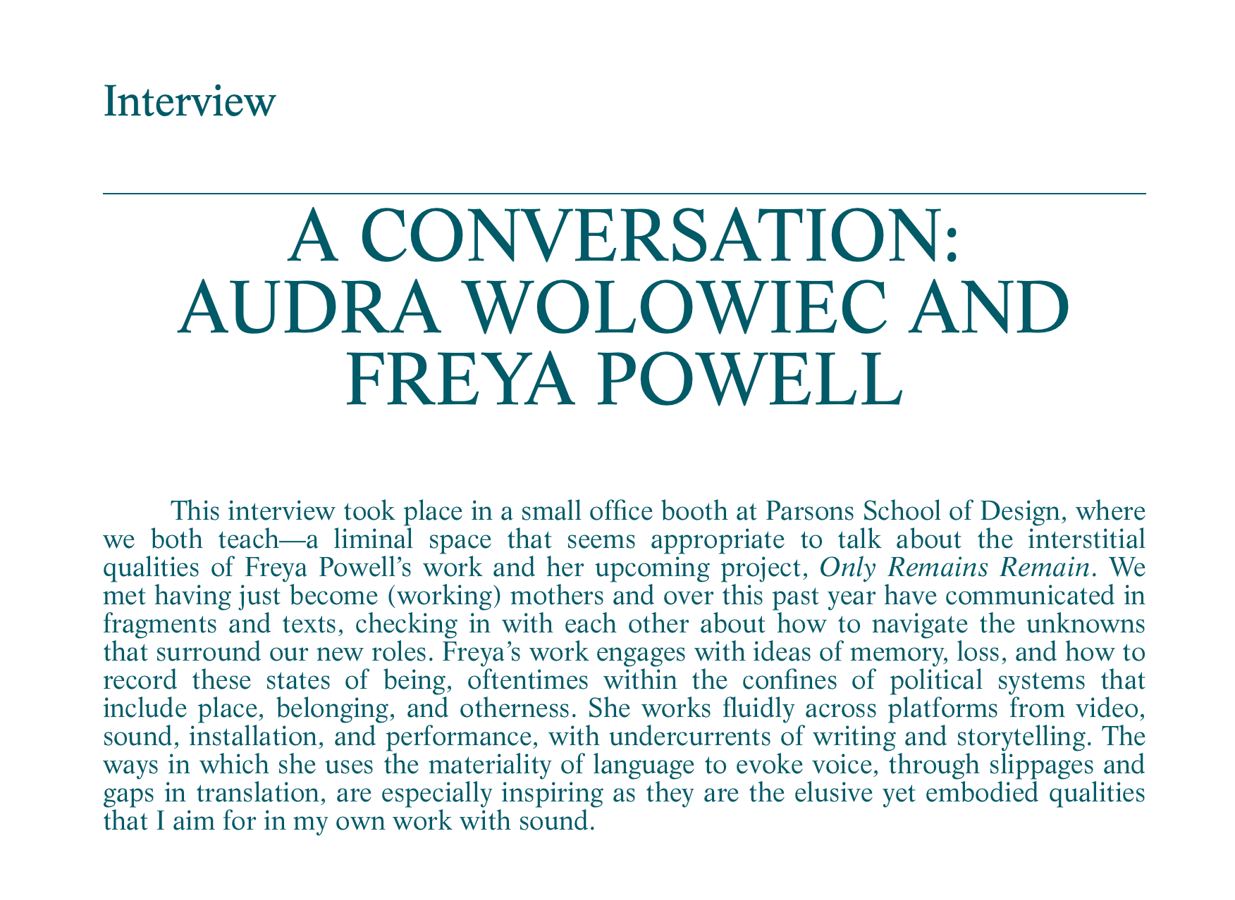 An interview between Parsons First Year faculty Freya Powell and Audra Wolowiec has been published in the most recent issue of the experimental music journal Sound American.