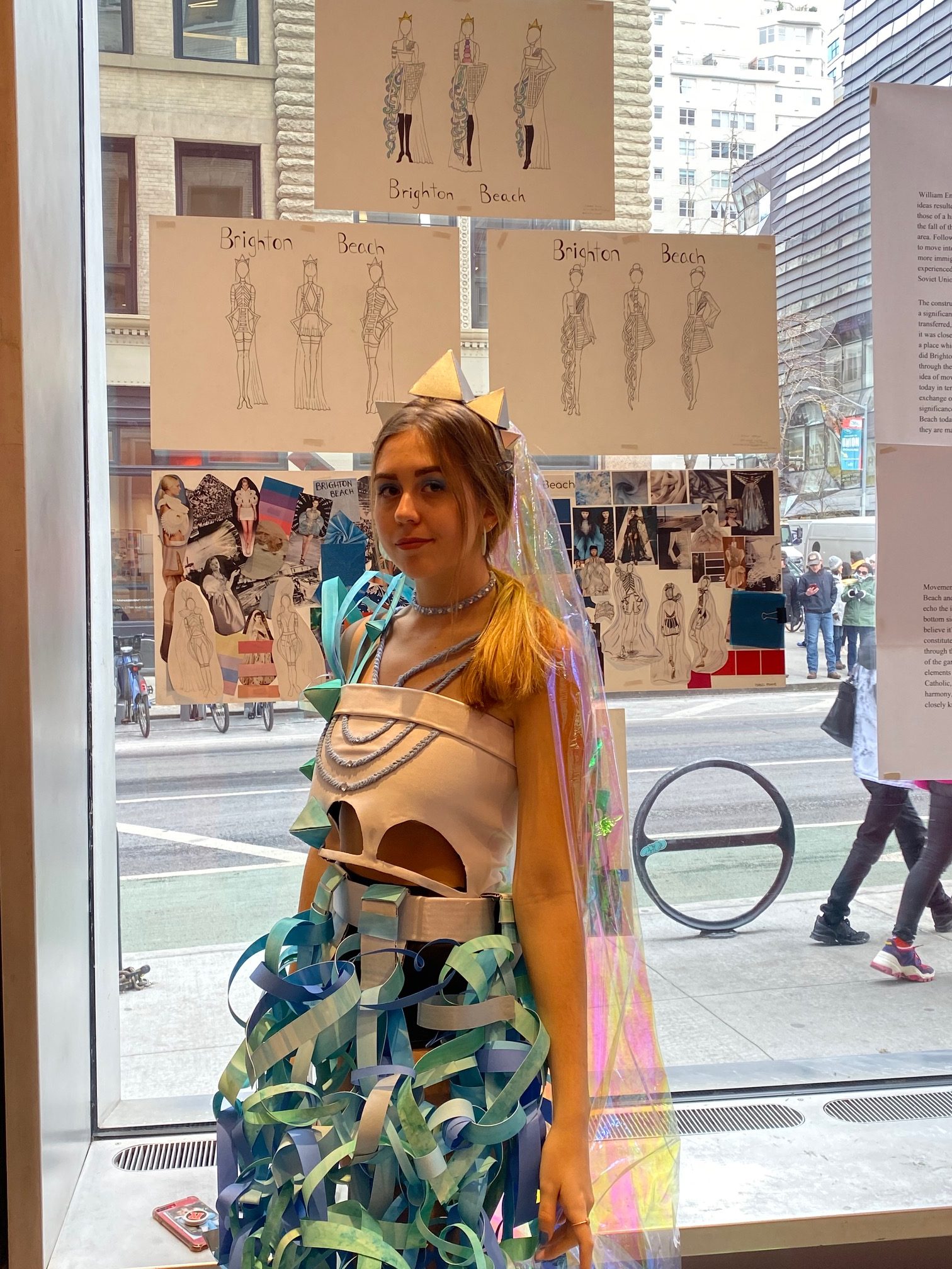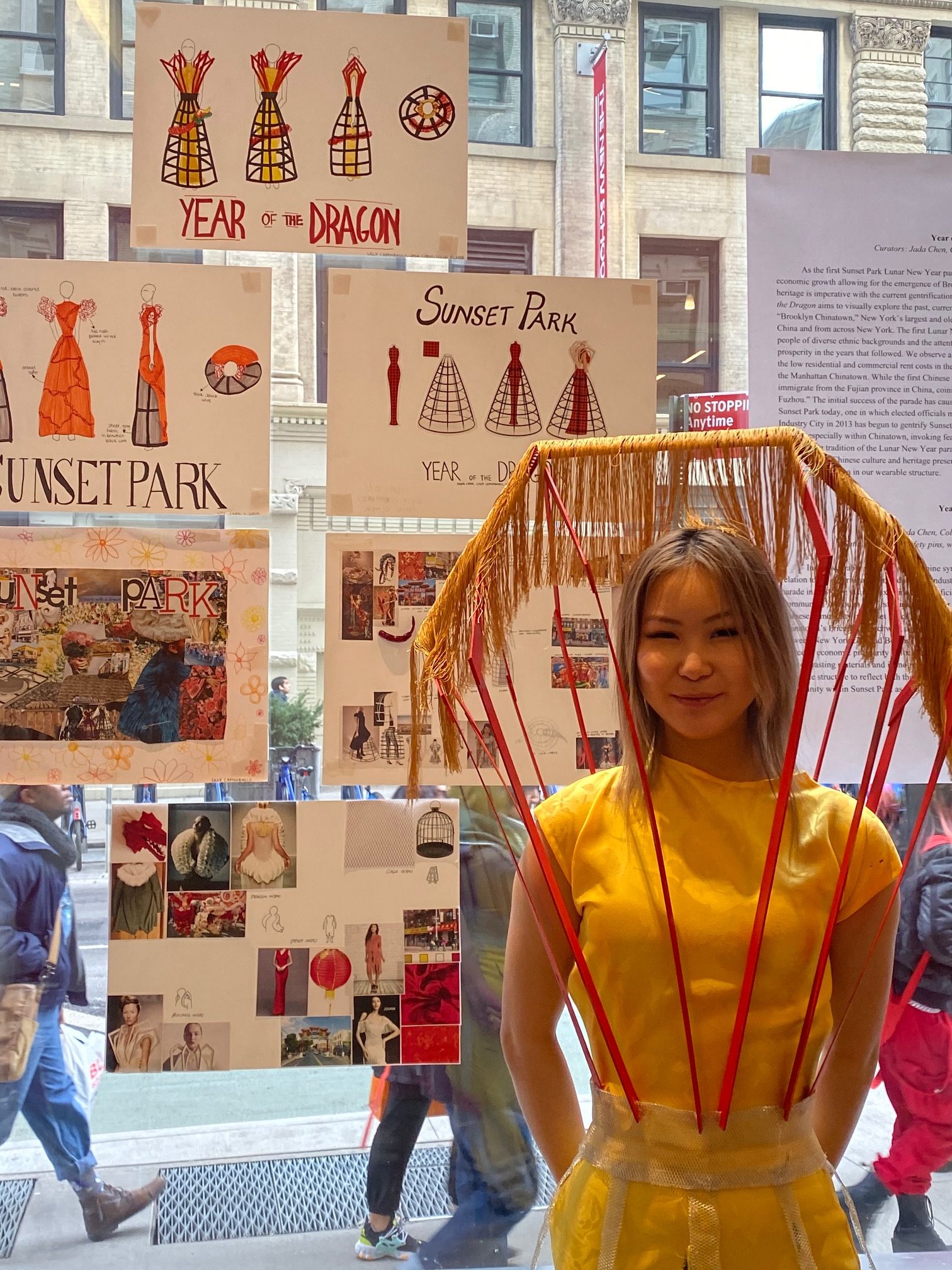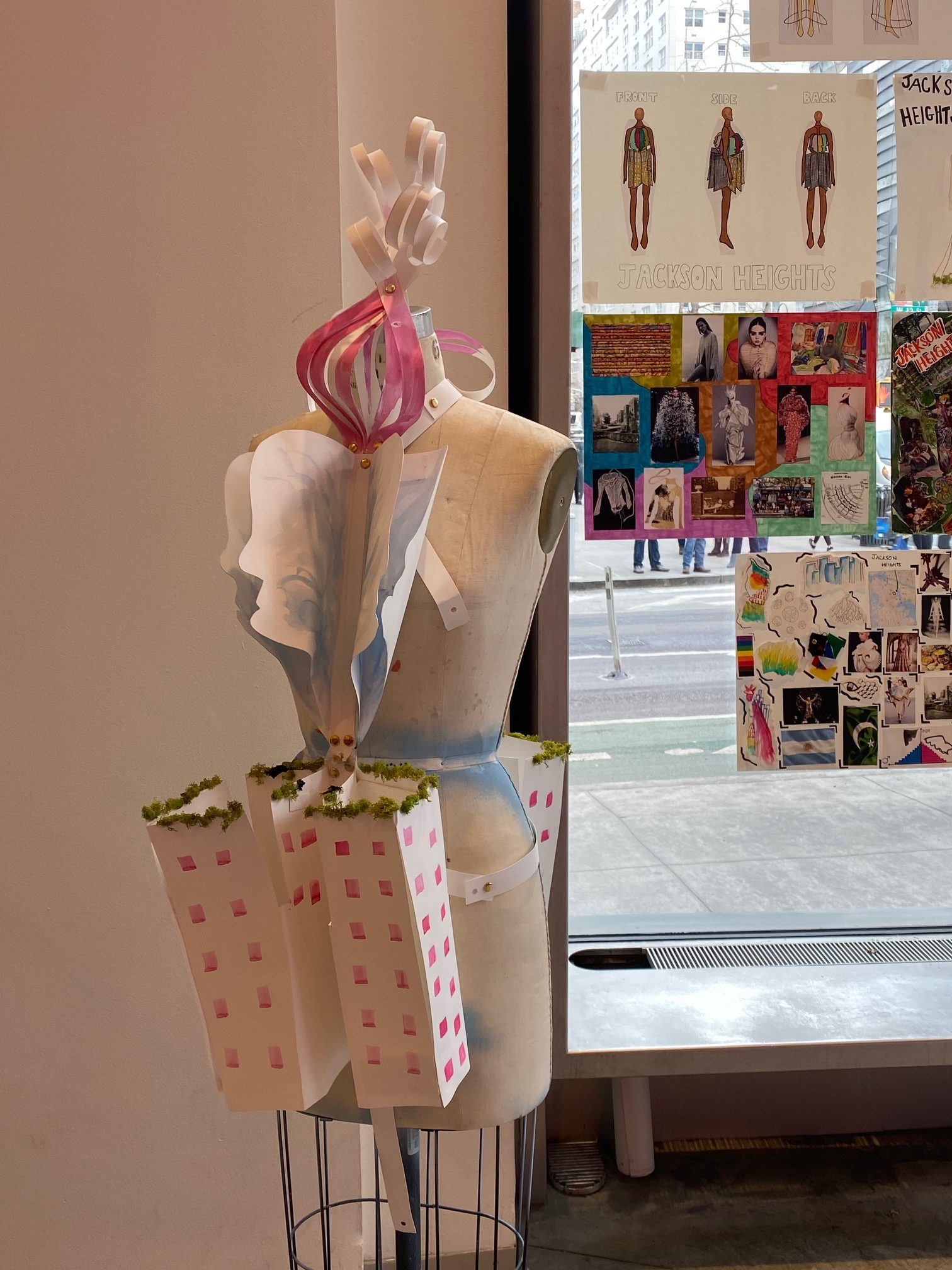 During the final weeks of the Fall 2019 semester, First Year students exhibited their collaborative projects in 2 West 13th Street. Researching neighborhoods in New York City, the students worked on the pieces during the semester as part of the Integrative Studio (taught by Mimi Kim) and Integrative Seminar (taught by Elizabeth Chakkappan) courses.