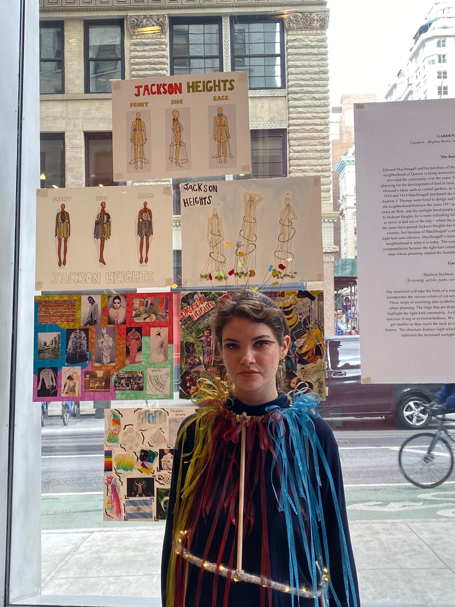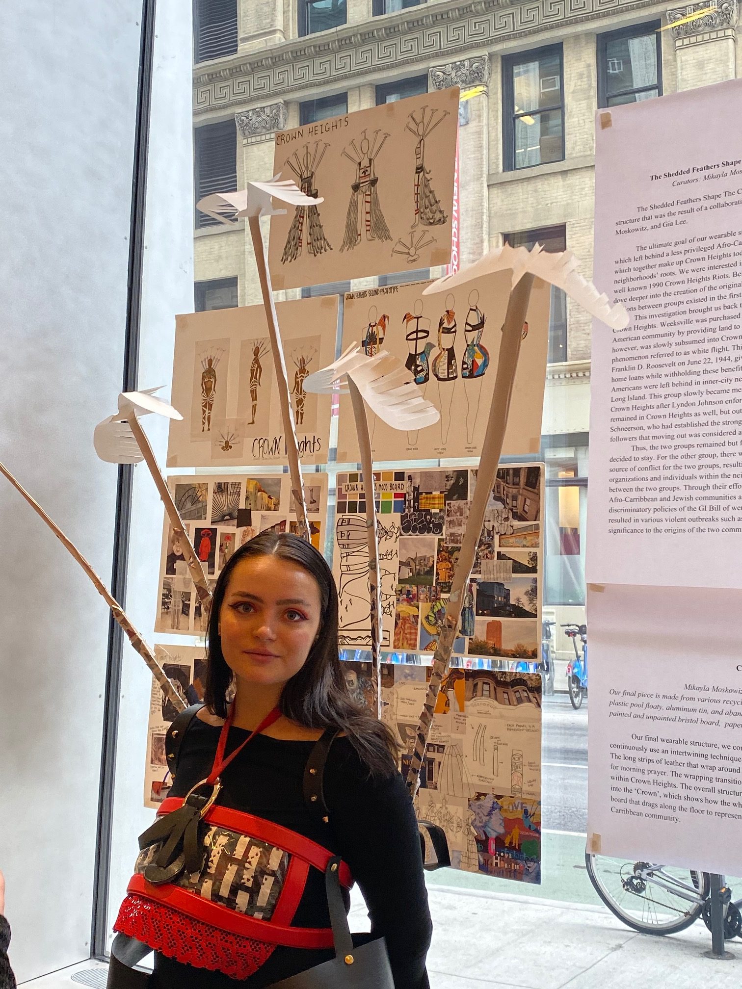 Students created wearable “architectural” structures to memorialize an aspect of a lesser-known New York City neighborhood they have researched through observation, reading and on-the-ground reporting.