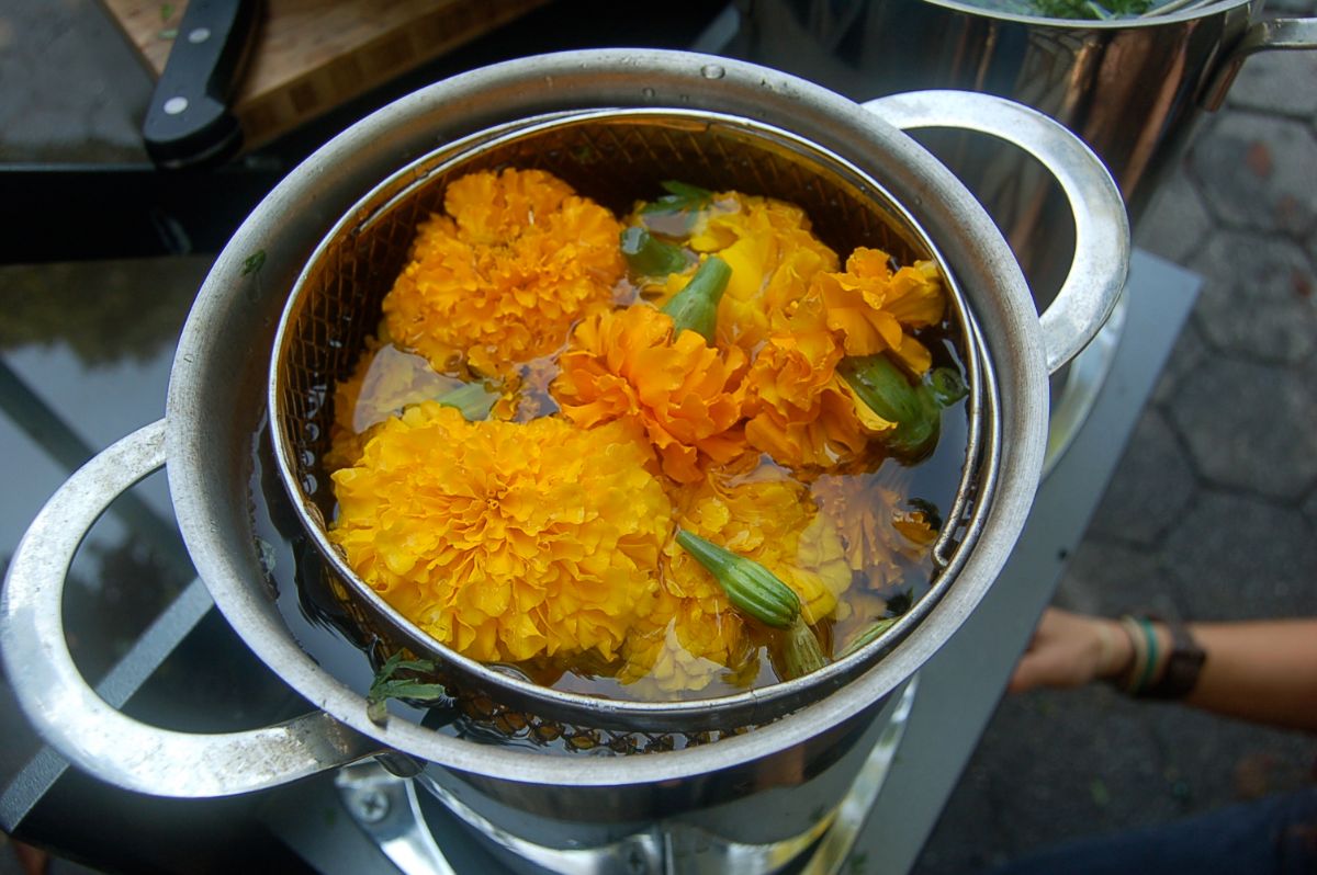 The Dyeing with Regional Plants workshop teaches students how to extract dye from plants, how to shift the pH of the dye in order to change colors, and how to go about dyeing various natural fibers. Dyeing with Regional Plants also discusses bioregional textile production and how to design using the capacities and limitations of specific ecosystems. Our exploration will address ways we might apply this methodology to our current manufacturing systems in order to implement regenerative production of clothing, textile products and interior designs. In this workshop, we will also discuss circularity and re-purposing as we use textile scraps, agricultural byproducts and food waste as materials. Supplies aren’t required to attend this workshop. Participants can also observe and take notes.