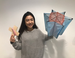 After making paper models of platonic solids from repurposed material, iterative designs were drawn using plan axonometric projection, followed by 3-D models of larger multi-cellular models using repurposed materials such as straws, wire, repurposed plastic bags and tissue paper. Kites had to be collapsible and easily assembled into multiple cells. Finally, students learned how to sew using domestic sewing machines, as flat patterns derived from shoe patterns and enlarged were then adapted as cellular walls of their kite, using ripstop nylon for the membrane, and carbon fiber rods for the spar structures. Students also constructed all joints with dacron nylon ribbon using the sewing machine and specific folding techniques.