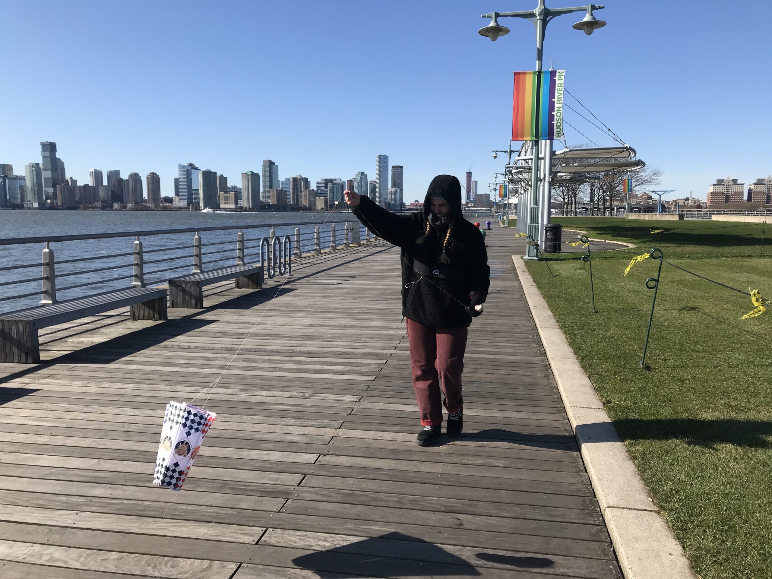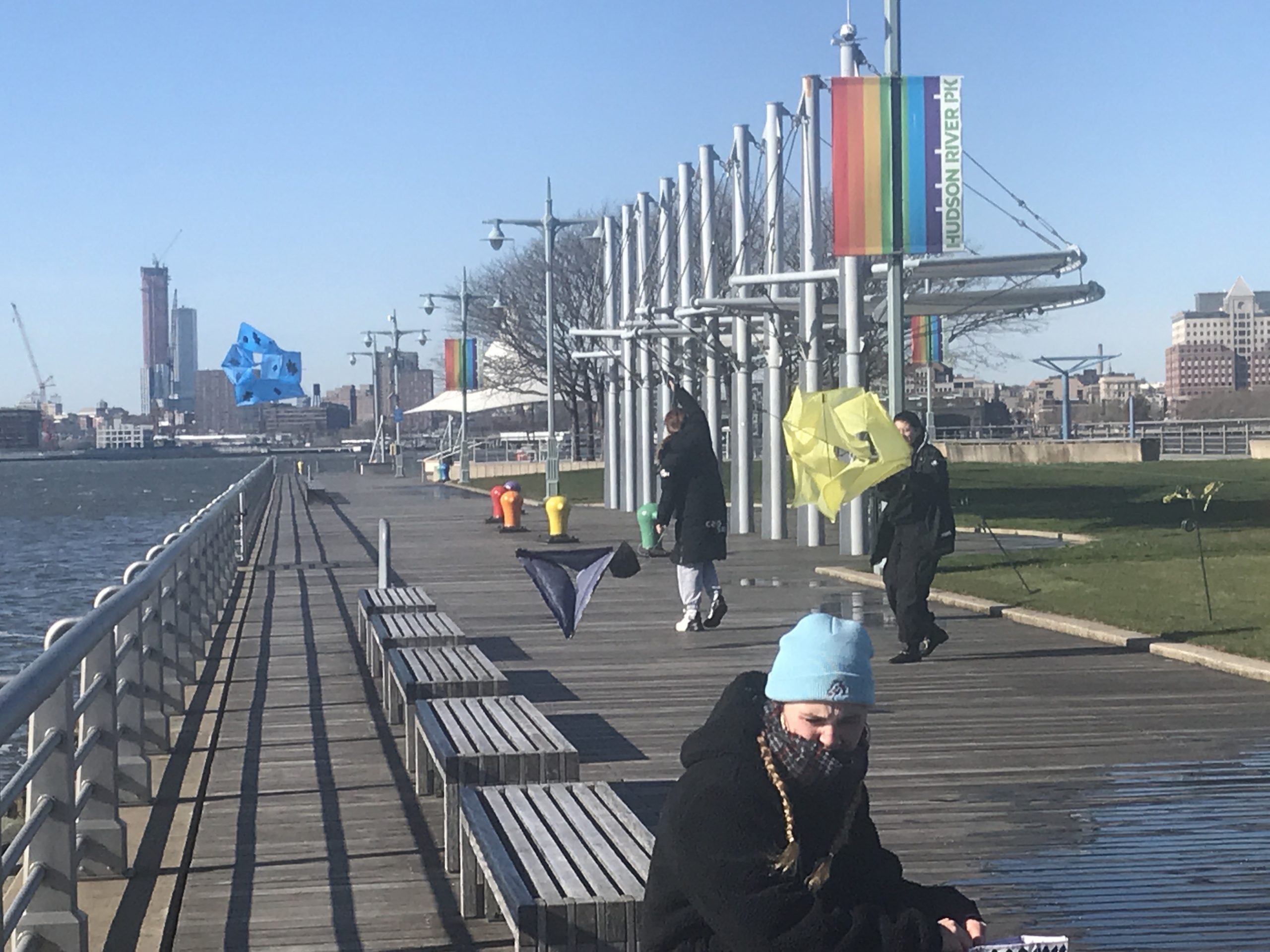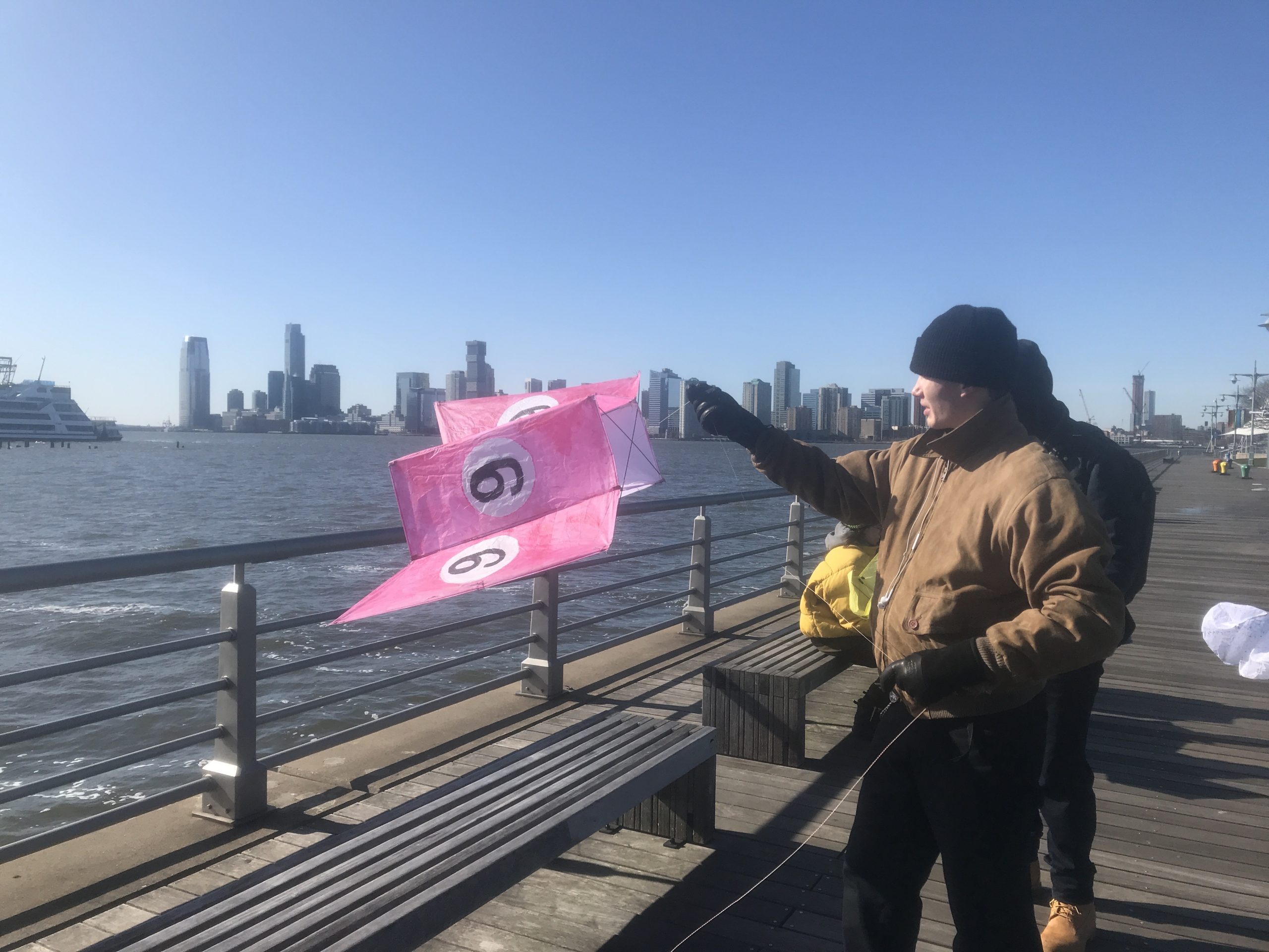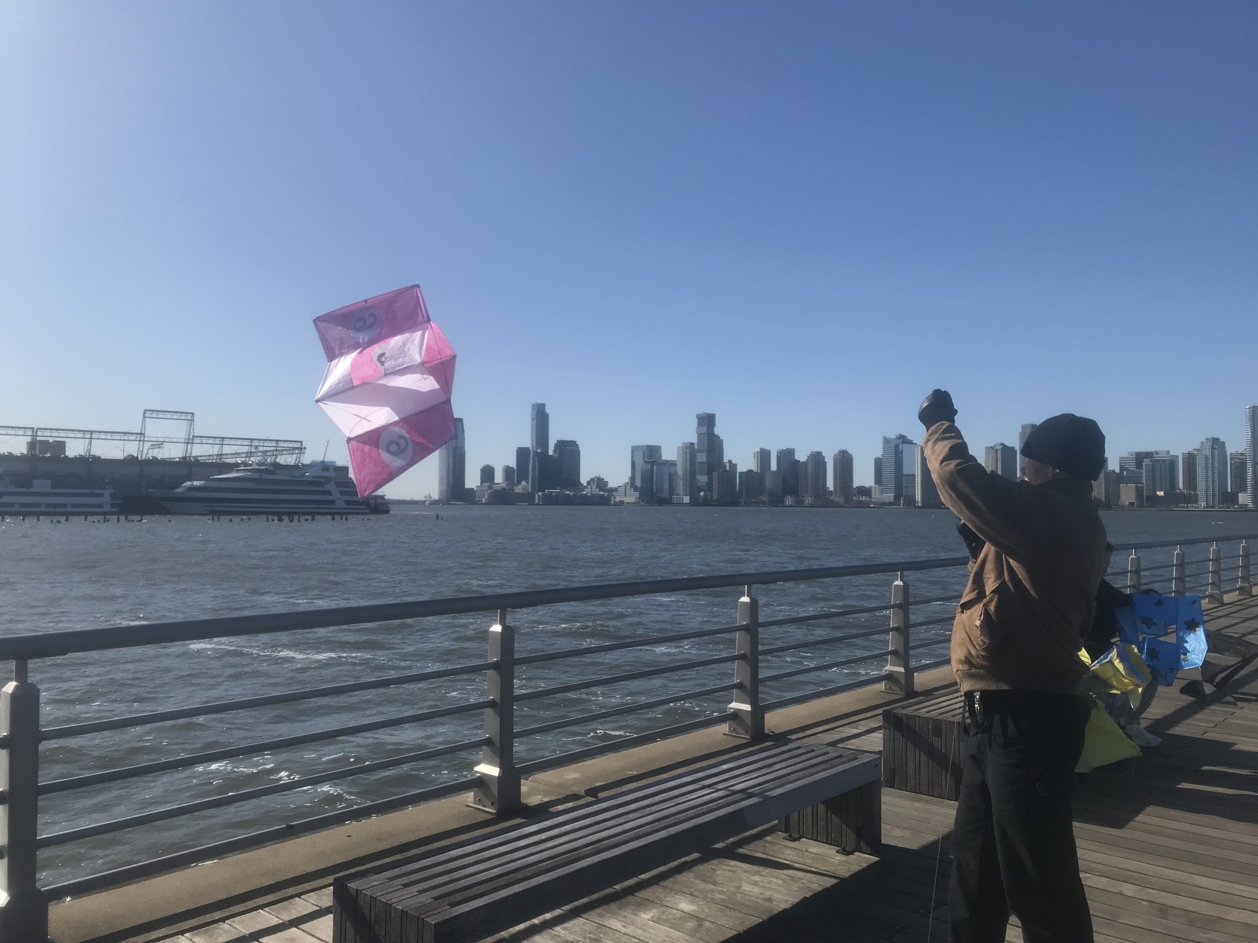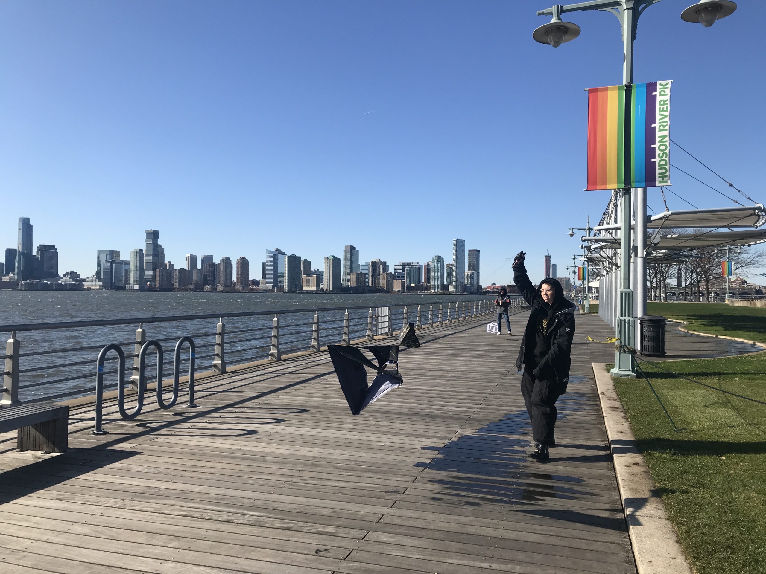 Some students experimented with staining the ripstop nylon prior to cutting out patterns and sewing. Some students waited to add the fluid acrylic designs post-construction. Projects were completed by drawing up assembly instructions, designing and shaping their own kite-winder mostly from cut and sanded wood planks, plywood, and blocks, creating a bag to carry all kite parts and making two test flights, one in Washington Square Park, followed by the final test flight at Hudson River Park on November 13.