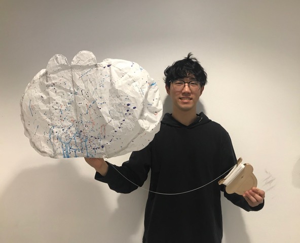 Following the construction and flights of the kites, students in the course voted for a winning kite amongst all of their peers projects. Peter (Yung Sung) Kim received the most votes from his classmates for having the best kite project. His project was inspired by a cloud form, and titled Cloudy with a Chance of La Croix.