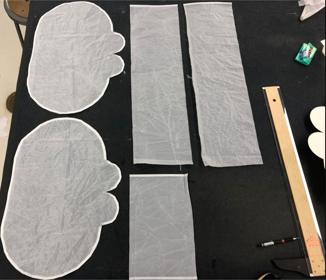 I really had a lot of fun sewing the patterns–the straight parts–and inserting the spars aspects of the project, mainly because I found them so satisfying and rewarding as I saw them come together. The most challenging aspects include calculating the dimensions of the pieces to fit in the nylon sheet and sewing the curved edges. Especially for the last part, I struggled a lot using a sewing machine to combine the parts and hemstitching to refine the edges.