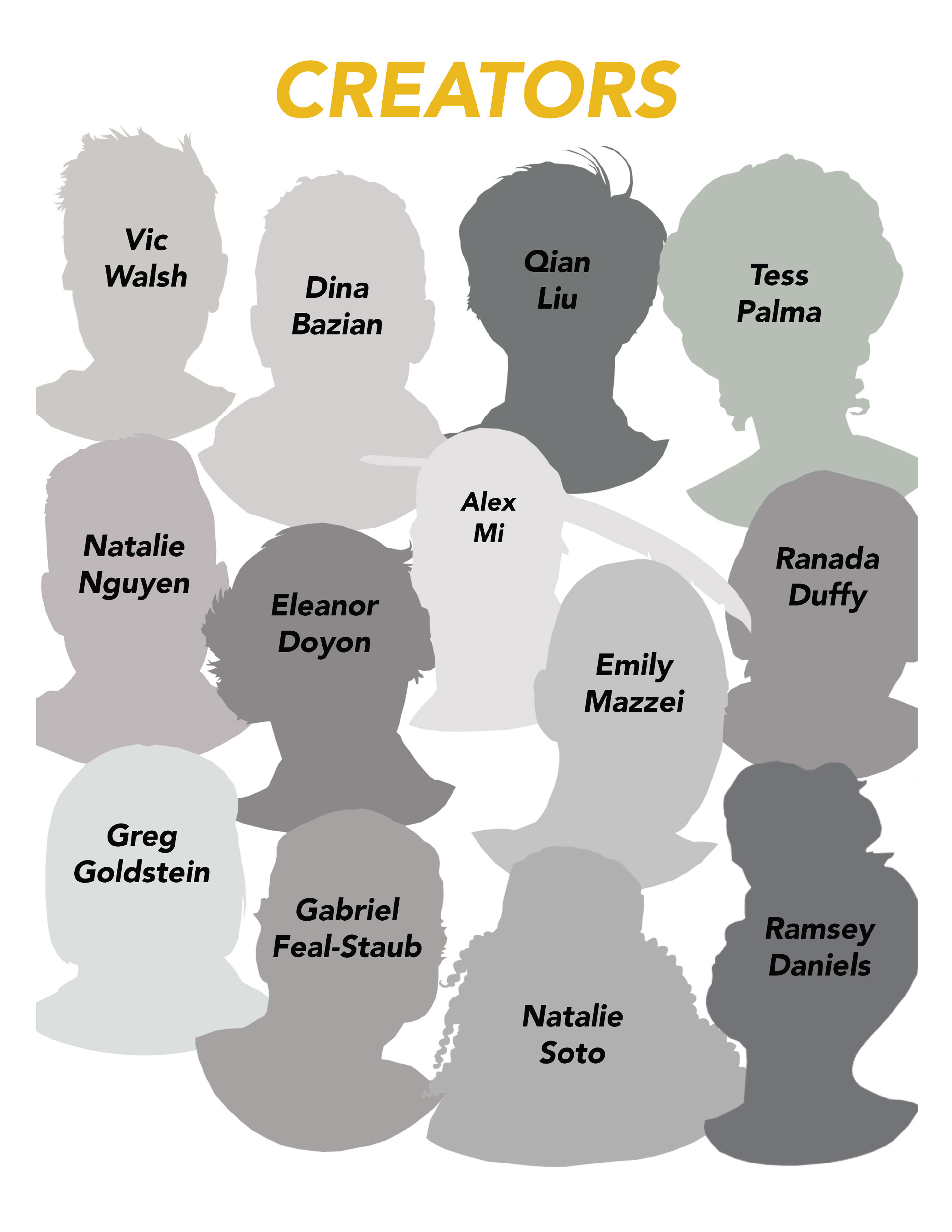 Integratives Studio and Seminar students Dina Bazian, Ramsey Daniels, Eleanor Doyan, Ranada Duffy, Gabriel Feal-Staub, Greg Goldstein, Qian Liu, Emily Mazzei, Alex Mi, Natalie Nguyen, Tess Palma, Natalie Soto and Vic Walsh worked collaboratively to plan, design and print a collaborative zine titled Seven:10 as part of their Integrative Studio 1 and Integrative Seminar 1 courses, taught by Shari Diamond and Casey Haymes.