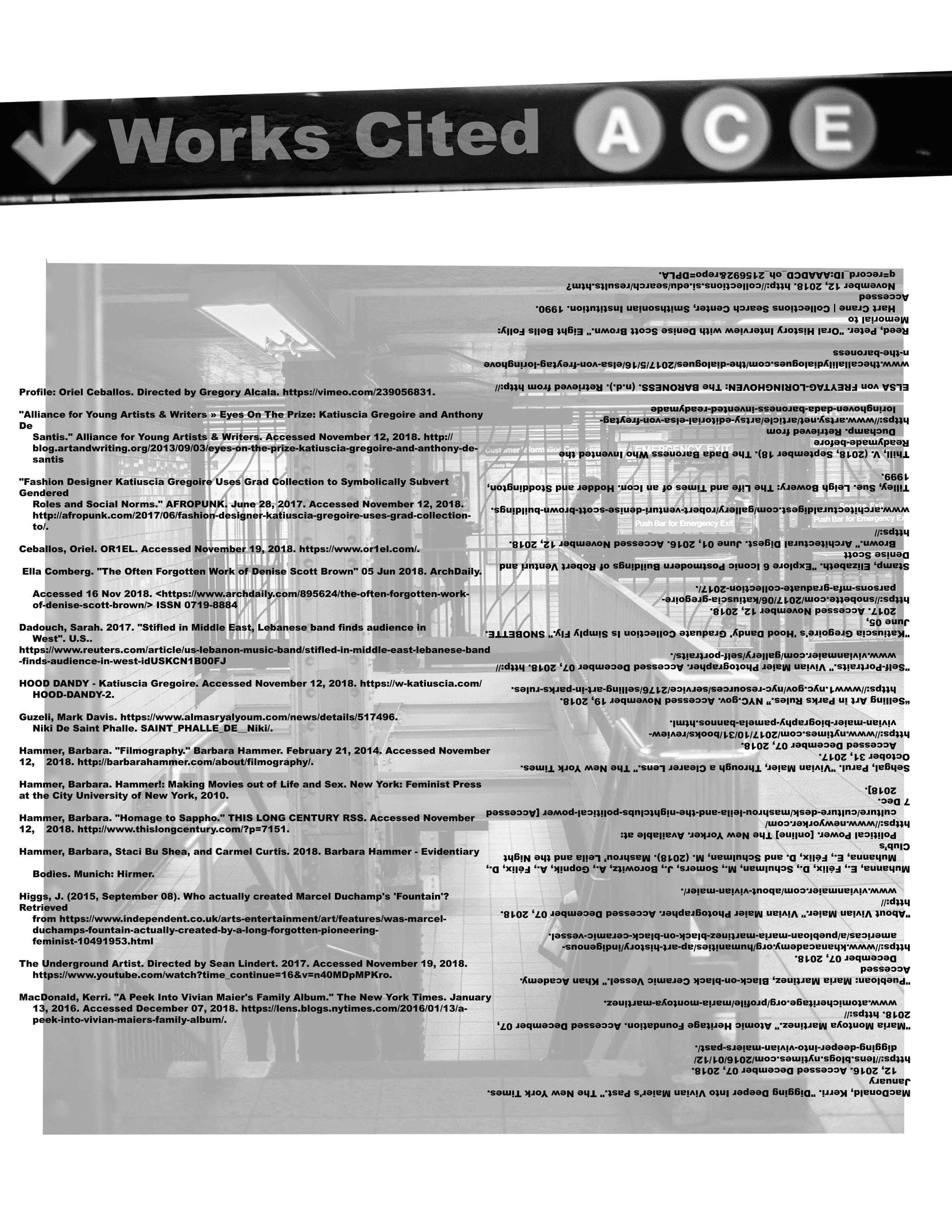 To develop an understanding of the context of information delivery (i.e. which sources are valuable for what kind of information and how that might be used as a source of knowledge), a variety of primary and secondary sources were utilized — including oral histories, blogs and JSTOR. Students explored working with an archive as well as generating their own material and content. The collaborative zine built out of these processes explored both the significance of the individuals selected as well as the mechanisms and values at play in the writing of history.