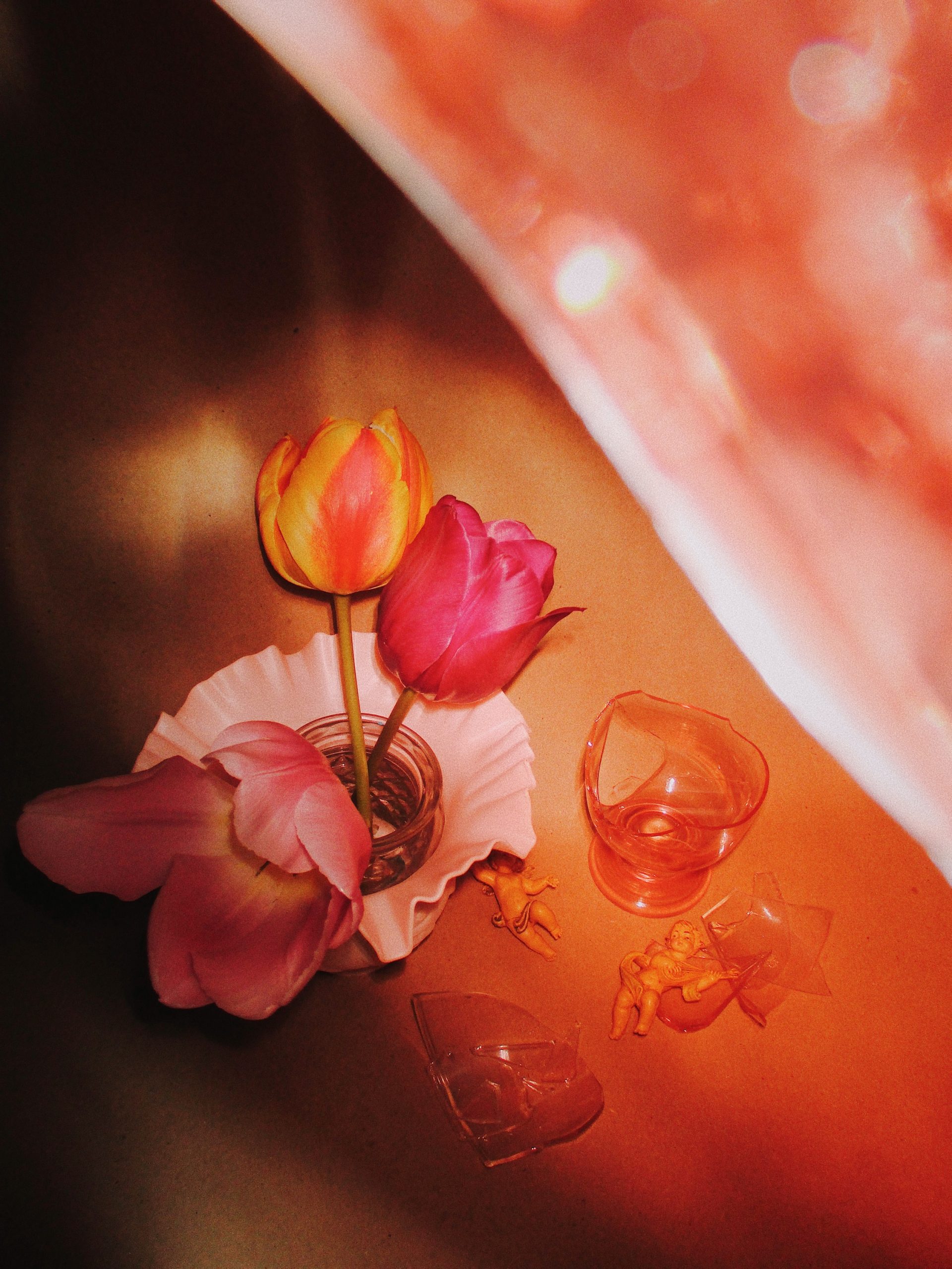 This collection of work includes the warm colors of spring and various objects found around the comfort of my home in Ohio. The intent with the use of flowers is to show what spring looks like for me right now. I included other objects of interest to showcase the perspective with which I look at spring now, in quarantine, and living a life I never could have expected just a few months back. It’s been difficult for me, trying to fulfill my duties as a student at Parsons with the global pandemic of COVID-19, and so this is me trying my best to make do with what I have here now.