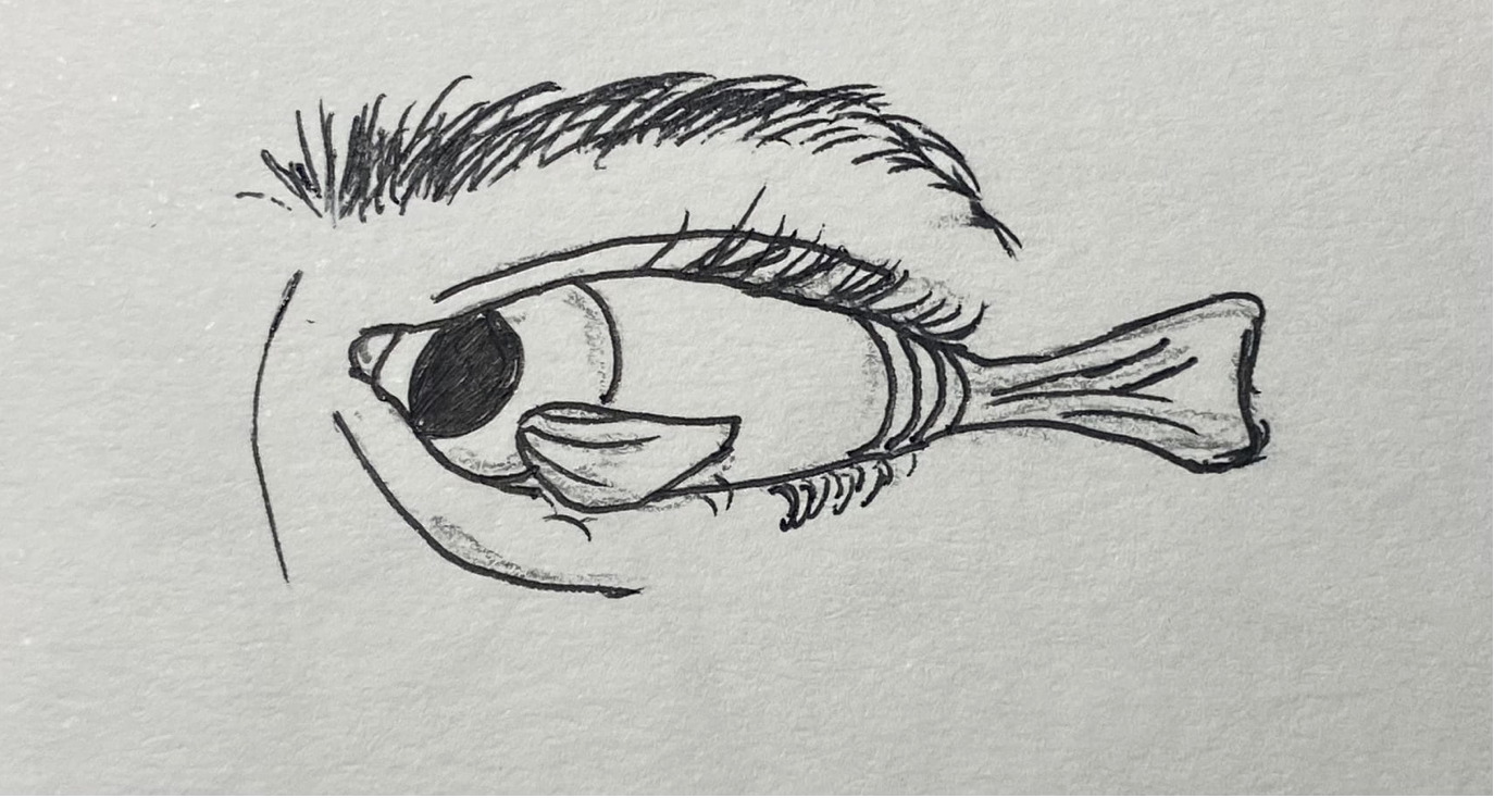 I was assigned to create a self portrait poem in which I decided to not only describe how I visually see myself, but how I also see myself in relation to my surroundings. I begin with describing my fish shaped eyes and long hair. My curious mind and dry hands. Through these images I connect to the memory of my mother and how I was born from one of the loviest beings I’ve ever seen. There I transform that memory into myself. I go from looking at beautiful paintings, to being a child of one, to then becoming one myself. Since my class is focused on memory, I tried focusing on my emotions, senses, and memories to convey my self portrait.