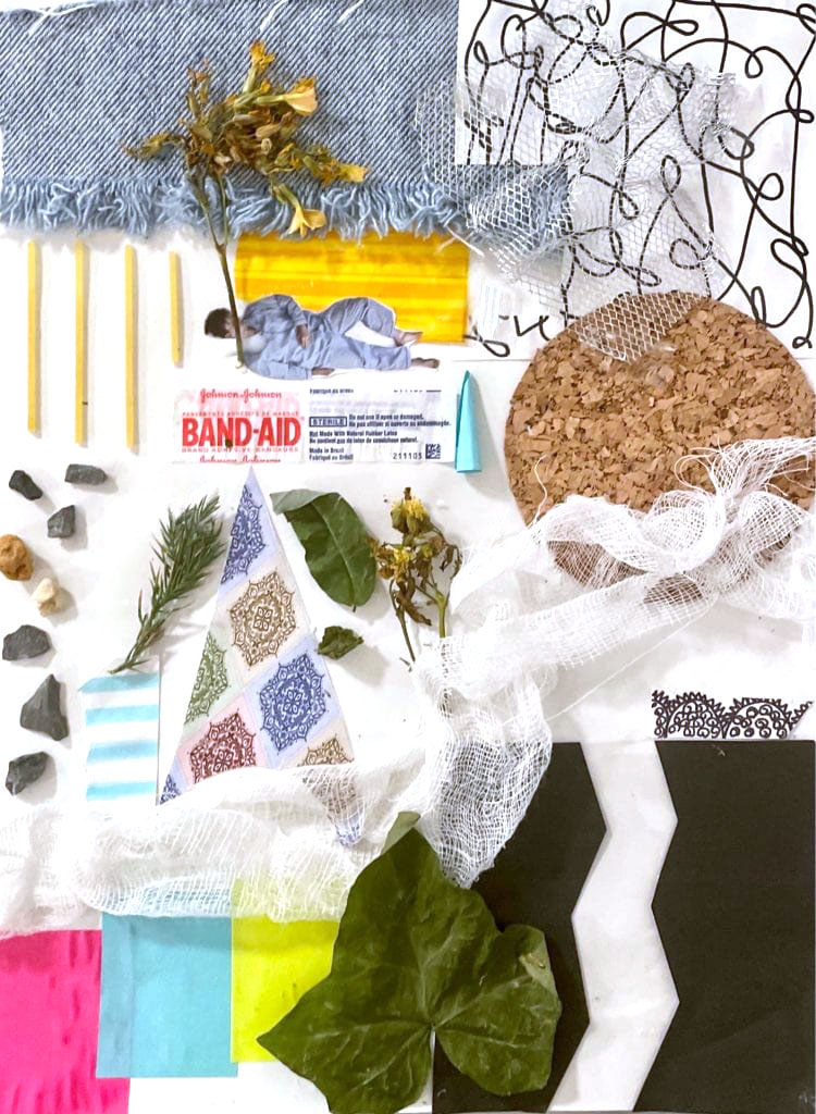 Prompt: In this project, we started off by minimal instructions of mapping memory on 4-inch squares. It included creating my room, my house, my neighbourhood etc. I did not want to plan something, I wanted to go with the flow because it was a project that I think is really personal to me. I wanted to make it as a reflection to me. Also, rather than using printouts or simply drawing them, I tried on using the actual thing. To understand each material and create a kind of thought process before creating the squares, I kind of created a collage in my sketchbook. It looks more like a mood board to me.