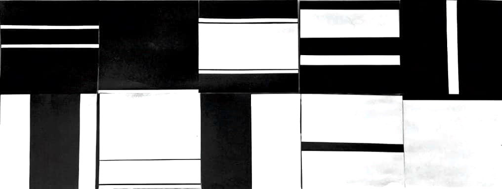 Prompt: The assignment started off by constructing parallel white lines of variable width on a specified size of black squares. Moving on, the restriction were lifted by including variable length lines and adjoining them together to create a dynamic composition. This was a project where we transitioned from traditional art to digital art (Illustrator). The last part of the project opened several gates of possibilities and prompted us to make any sort of composition while keeping the core essence of the project.