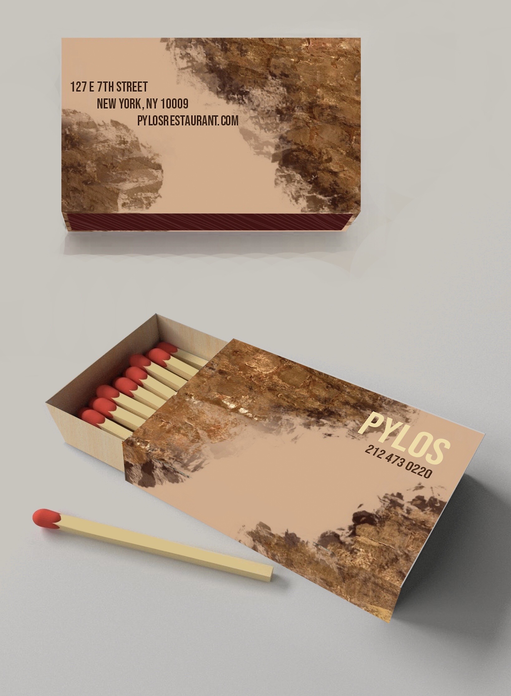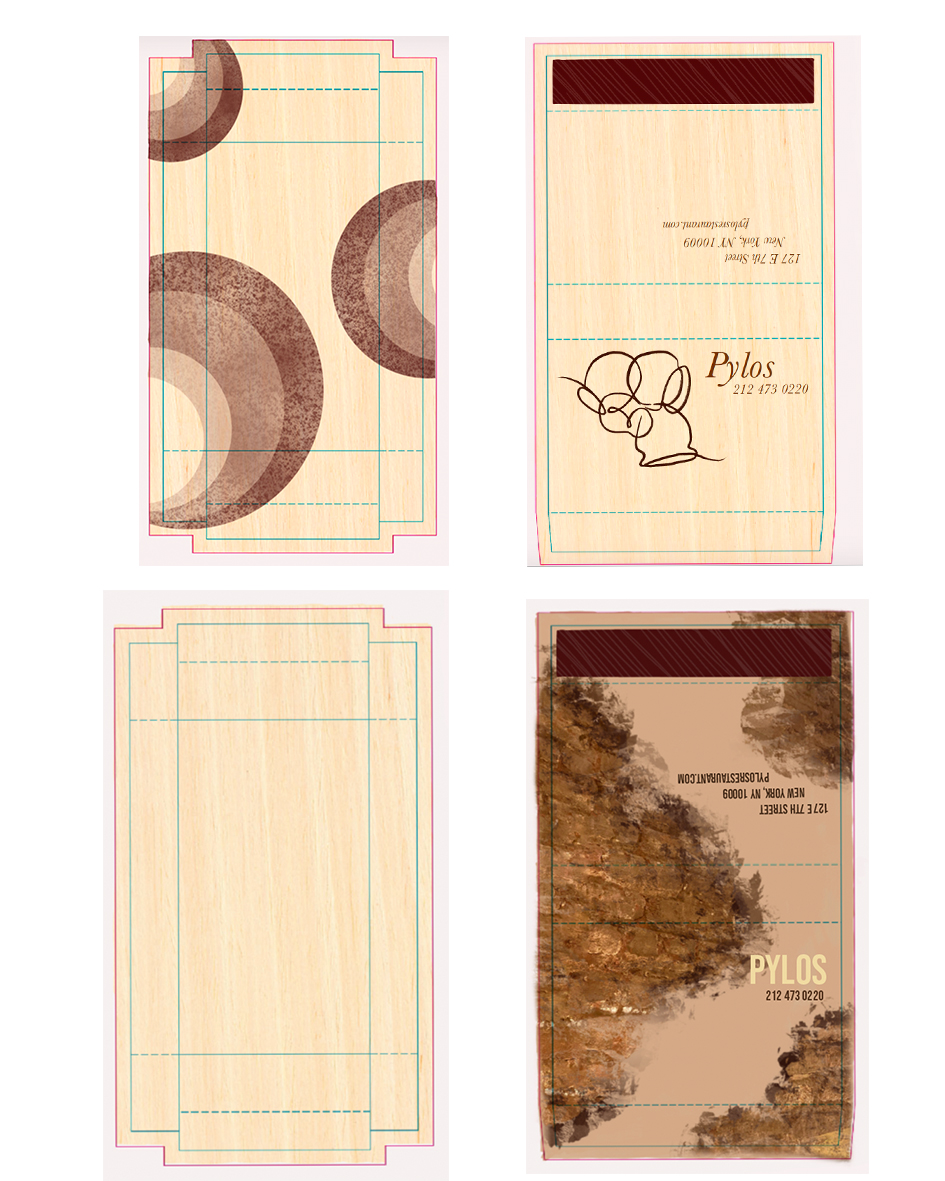 Prompt: We were assigned a restaurant for which we had to design a matchbox/ matchbook. We had to use the imagery, colors, and textures from the restaurant. We chose 4 photos and from every image, we had to choose at least one element to incorporate into our designs.