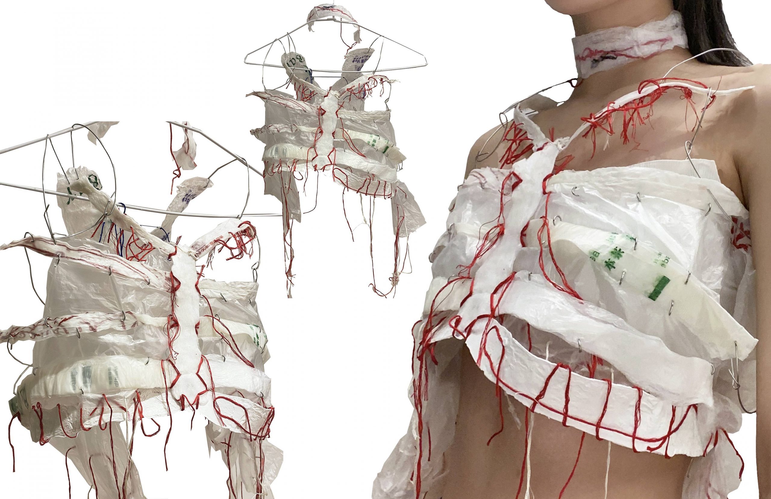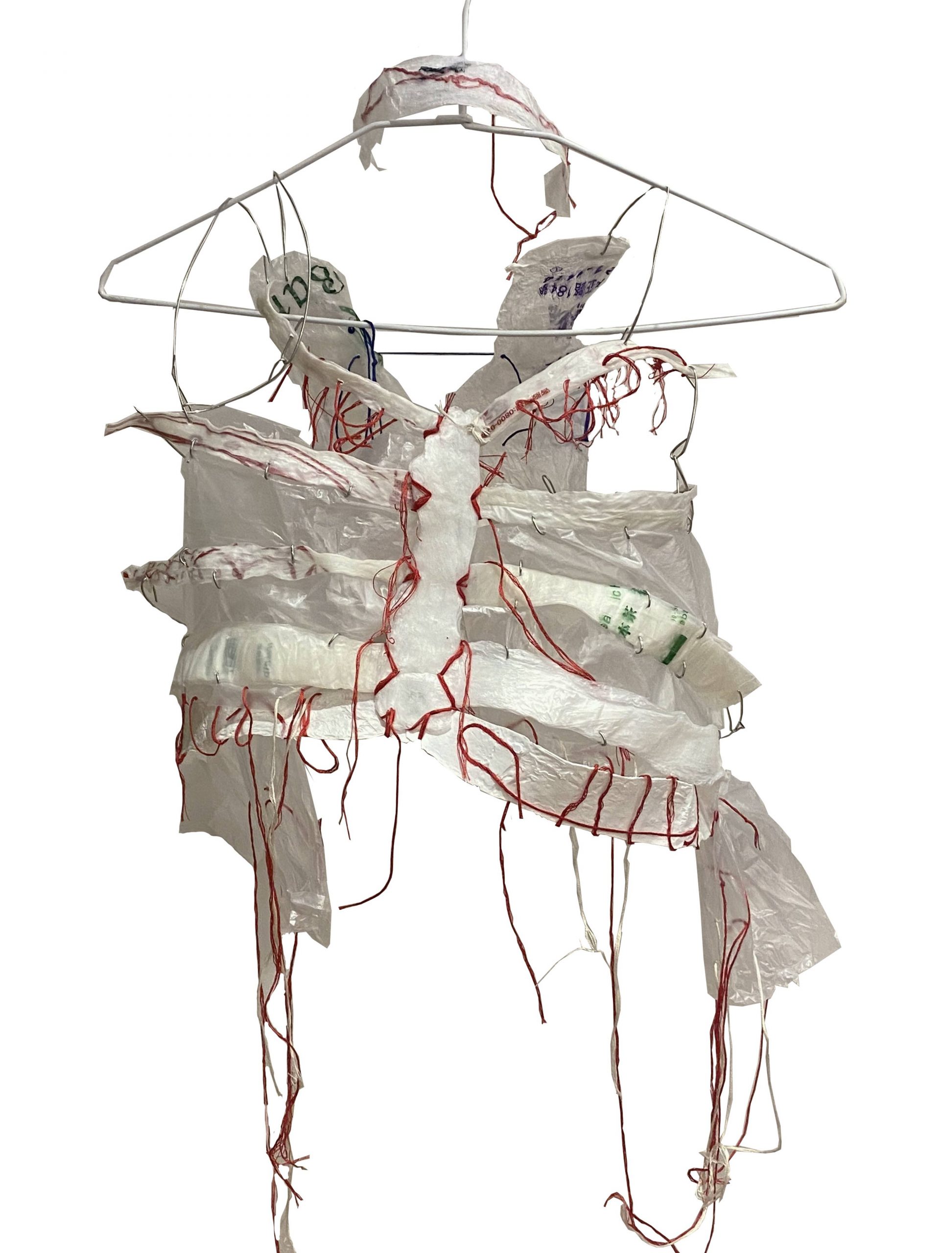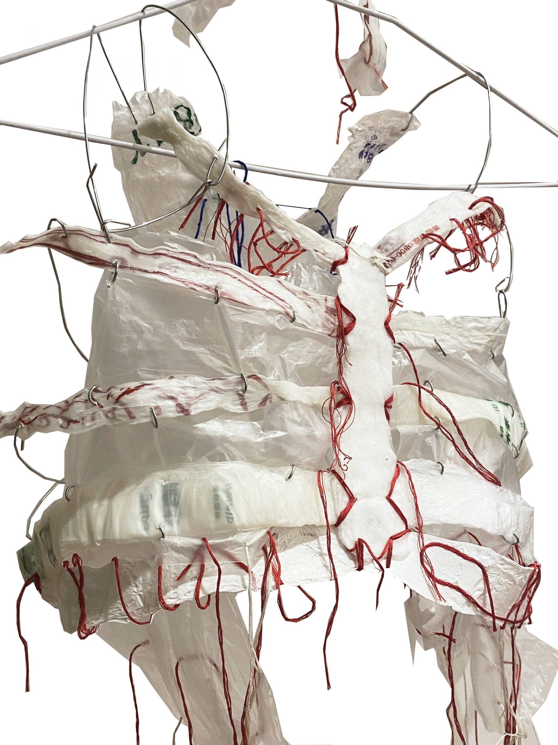 Medium: Plastic bags, thread, wire