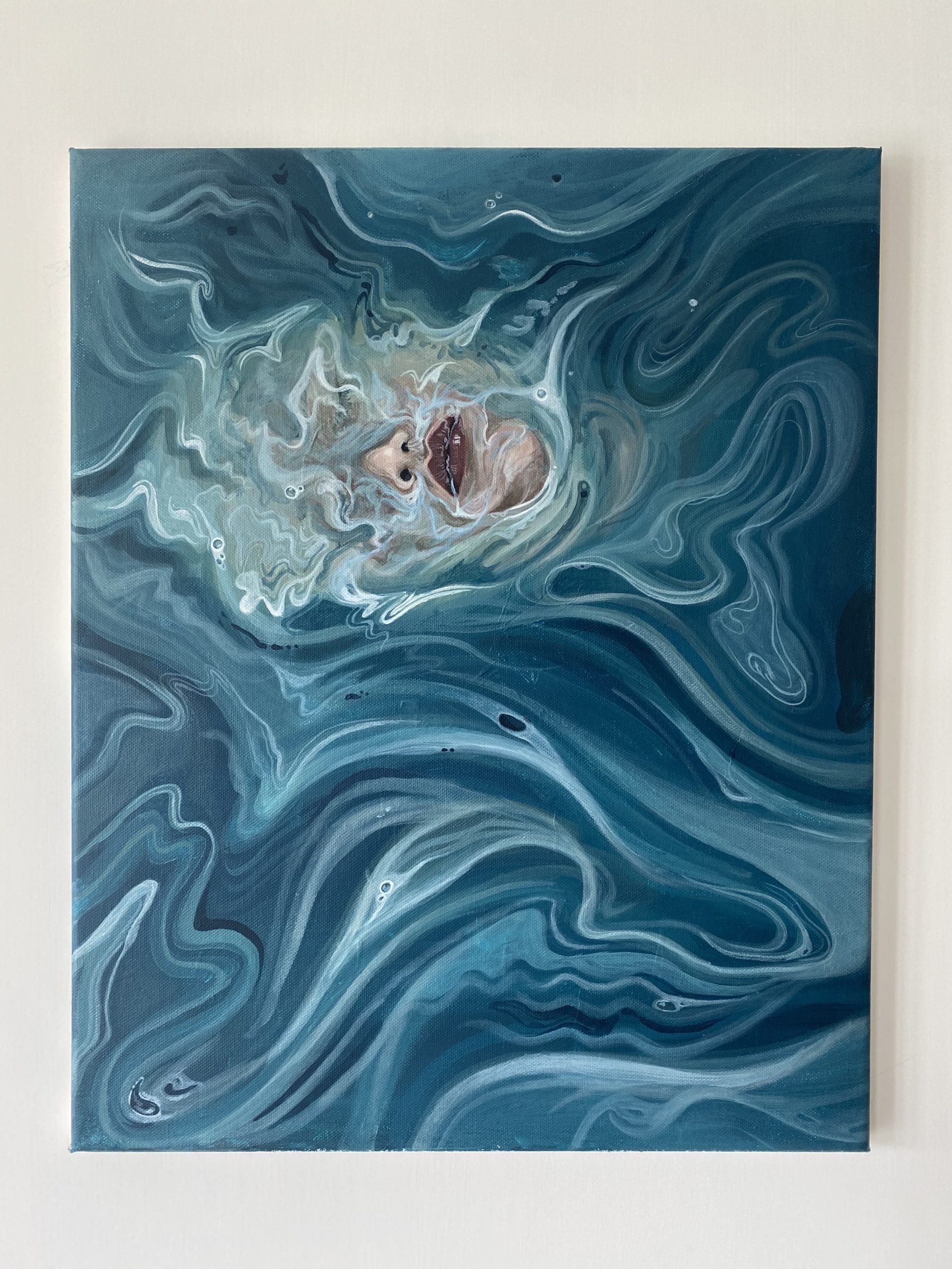 Exploring the overwhelming feeling of suffocation during this time of hardship and devastation. Not only does this piece aim to communicate overwhelming feelings of restriction because of the pandemic, but also due to everything else happening at the same time around the world. The world doesn’t stop and that is an overwhelming concept to think about. I chose to paint this in both detail and loosely, representing the xation on details when handed a picture.