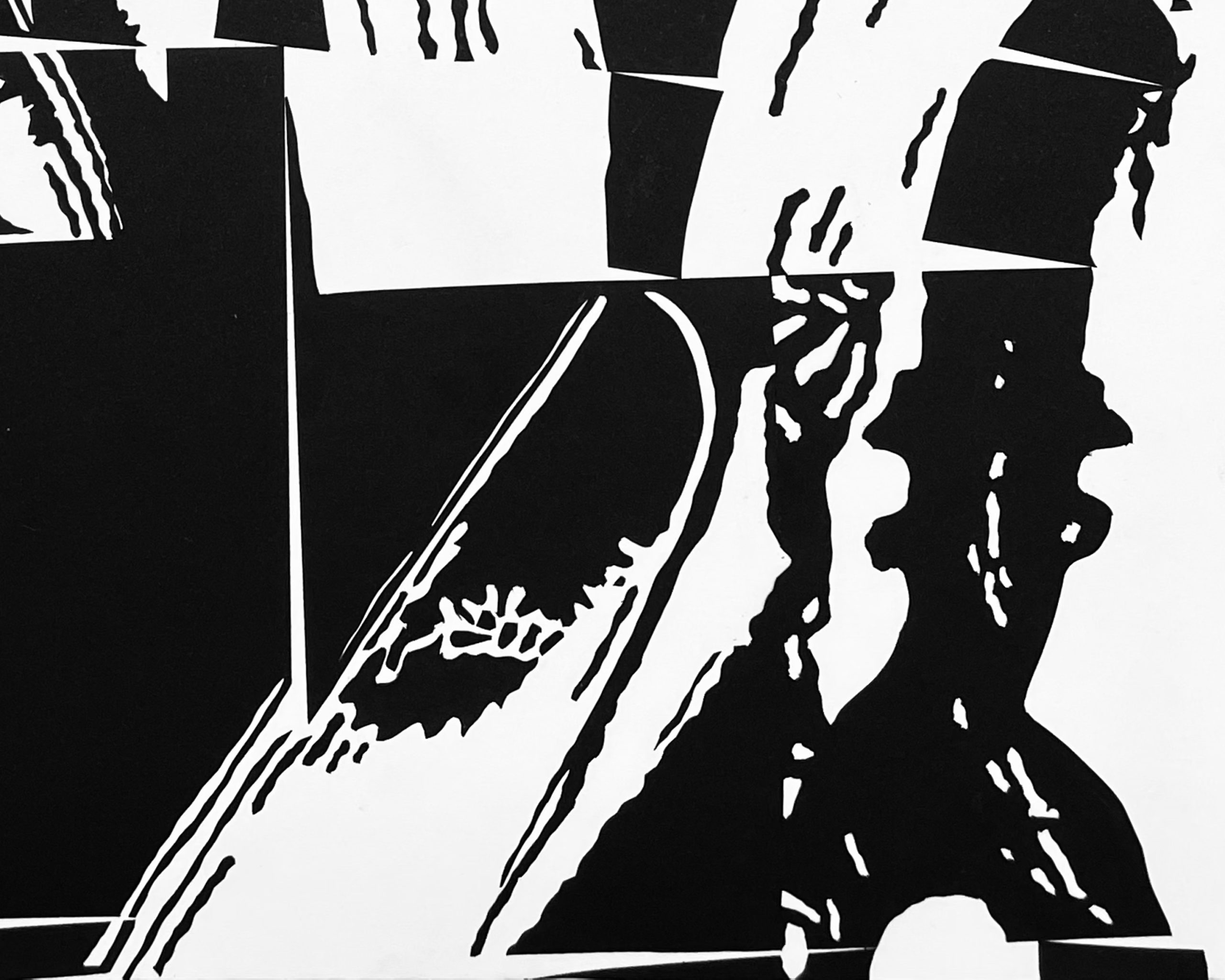 Prompt: Focusing on the elements of design, effective composition and gestalt principles, students create a detailed cut paper collage using iconic/chosen objects as a vehicle for abstraction.