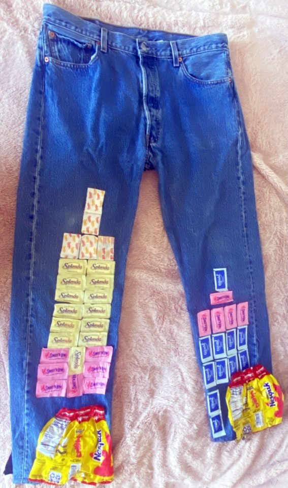 The idea of this project was firmly based around the world that I lived in within my early years. I sketched these images based on what occurred each day that reminded me of my childhood. I wore bell-bottom jeans that were my mother’s in the 90s and it reminded me of how much she has influenced my everyday life choices even up to my sense of style. The day that I sketched the Nesquik bottle I caught a glimpse of one the local bodega by my dorm and it instantly brought me back. I was able to curate my materials during class and I was walked through my old neighborhood in the process. Scavenging for these items within my old hood really set the tone when it came to creating this final project. It brought value to this Strawberry Milk.