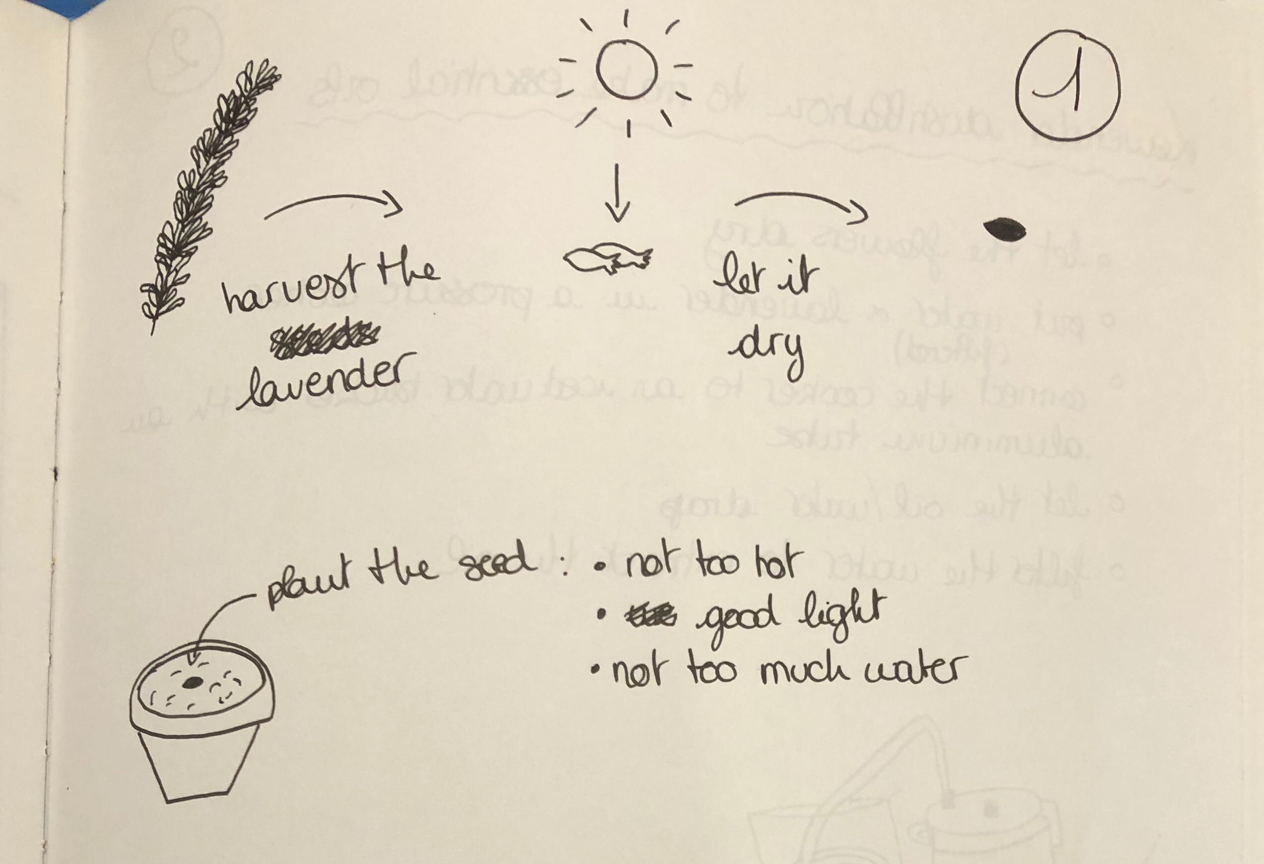 Every moment I live, person and object I love, I define them through their smell. So, when we were assigned to recreate an object that represented ourselves, I decided to recreate lavender. The only way my brain could represent lavender was through it smell. I wanted to make lavender essential oil by growing my own lavender. After many attempts to find lavender seeds in New York City, I came to the conclusion that I would have to sacrifice the handful of lavender I brought all the way from my grandmother’s house in France, to Brooklyn. With it, I tried many different methods to make lavender essential oil. They all failed, but I was eventually able to distillate lavender in water. Like so, I ended up with a lavender-scented water. I had finally extracted what I think is the essence of lavender.