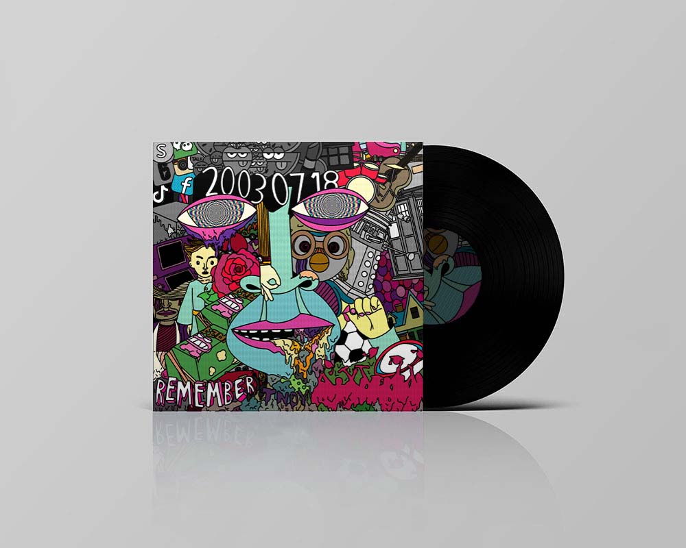 What is in the album? Music always has been a very big part of my life. When I hear certain music, I tend to remember the scene of the times I was hearing that music, remembering where, what time, and which season it was. One of the biggest albums that impacted me was Maroon 5’s “Overexposed” album from 2012 so I chose to parody the album cover lling the cover with my signicances. To leave a resemblance, I left the iconic facial components on the cover then built my life around them. The bigger an item, the more impact it had in my life, the brighter the item, the more I currently remember.