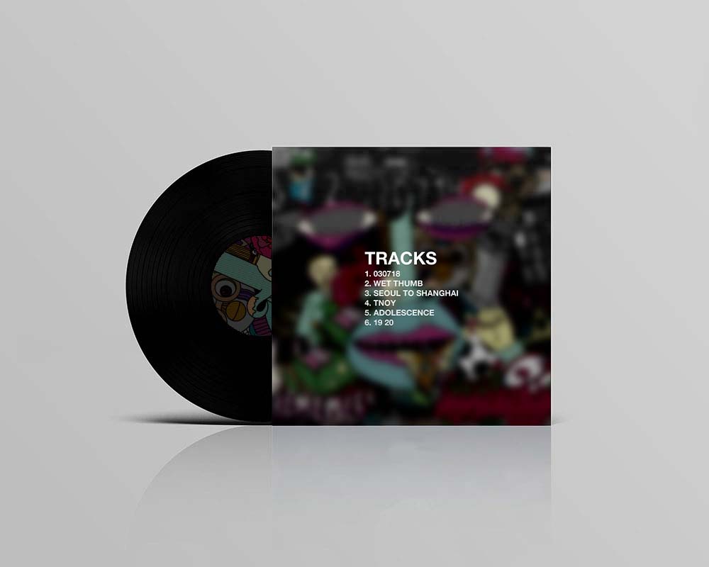 On the back, the track titles are important events from my life: 030718, my date of birth, Wet Thumb, me sucking my thumb when I was a baby to feel secure and safe. Seoul to Shanghai, when I moved from Seoul to Shanghai which is one of the biggest changes in my life. Tnoy, I used to spell my name Tony Tnoy because I did not know English when I rst went to an American school in Kindergarten. Adolescence, my teenager life growing and learning to become an adult. 19/20, the current stage in my life of not wanting to grow and become an adult, wanting to stay as a teenager.