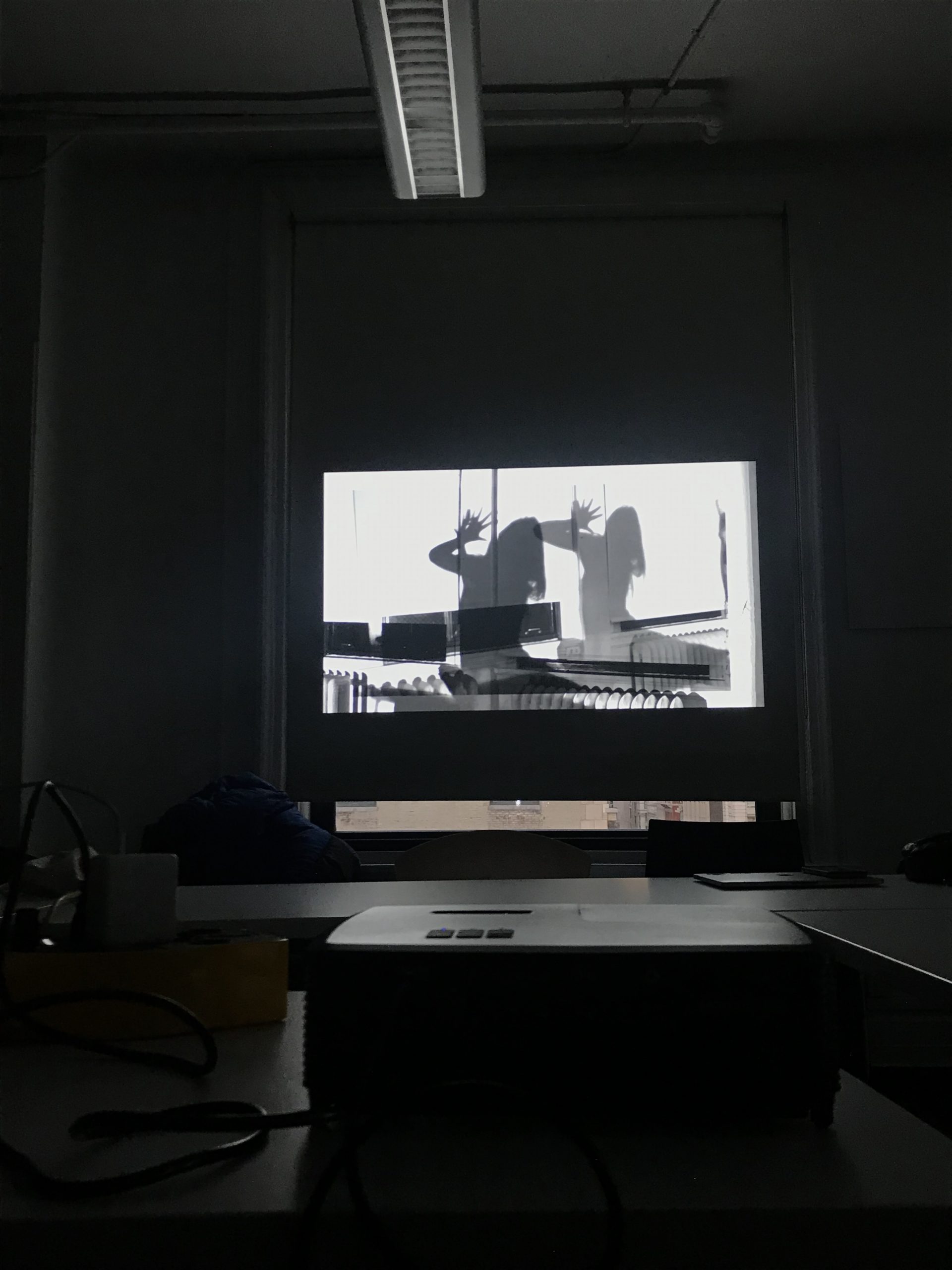 This performance piece is a bridge from my previous version (I DECIDED TO BE ALRIGHT) serving as an interpretation of pain. I forcibly faced triggering factors to translate and process difficult emotions, as well as to reveal physical depictions of weaker mental states. Being in an overwhelming environment, I performed internal suffering shown through body language and emphasized by slow, long movements. For filming, I intentionally performed against a window and projected my shadow so the audience would focus on the movements of the figure. Overlapping two videos, I was driven to create confusion about the depth and space, enhancing curiosity about the subject matter. Finally, for my presentation, I projected the video on a window covered by its shades to produce a site-specific performance, yet to also symbolize the ability to protect oneself from revealing their vulnerability and difficulties to an audience through the simple gesture of pulling down the blinds.