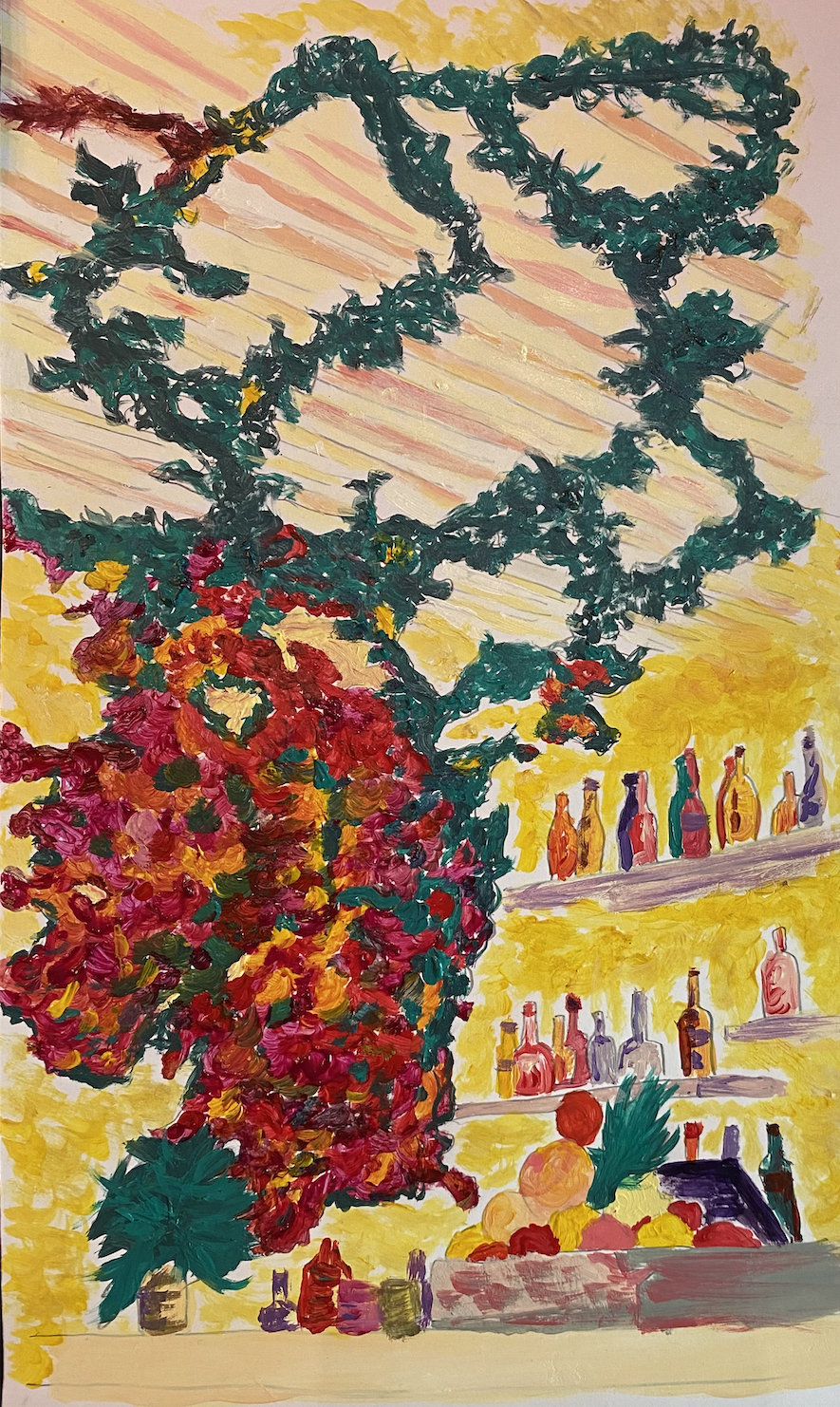 Prompt: Had to do a painting that could either represent "inside" or "outside," which would later work as another component that we had to juxtapose digitally with any previous assignment that we did in this class from this Summer term or with a fresh photo that we could take at that moment.