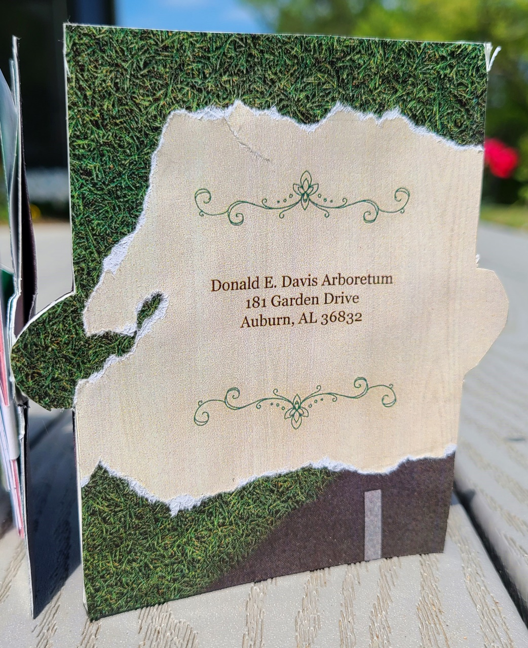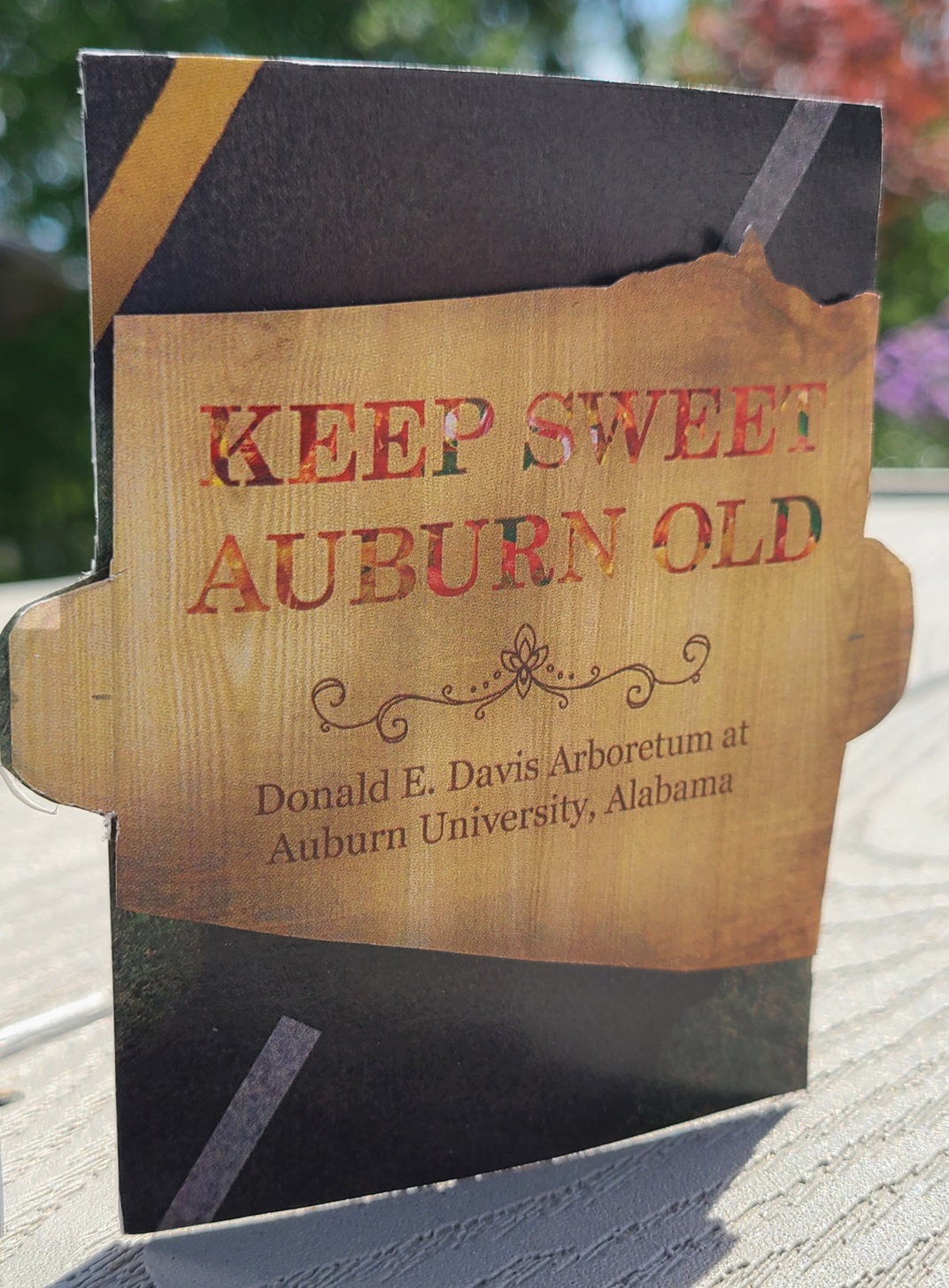 For my Bridge 2 project, I decided to focus on nature since that is a big part of my home. Auburn is a small town in Alabama surrounded by nature, and Auburn takes great care to preserve the wildlife around us through its parks and gardens. For my research, I focused on the Donald E. Davis Arboretum, which is a botanical garden in the middle of Auburn University. I used images from their Flickr account to decorate my accordion fold card and showcase some of the plants being grown there. However, I also wanted to show some of Auburn University’s racist history since this town has been around since 1836 and is deep in the South. I used pop-up techniques with pull tabs that the viewer could interact with to personally unveil this history and show that even if the university is not proud of its troubled past, it also does not do enough to address it.