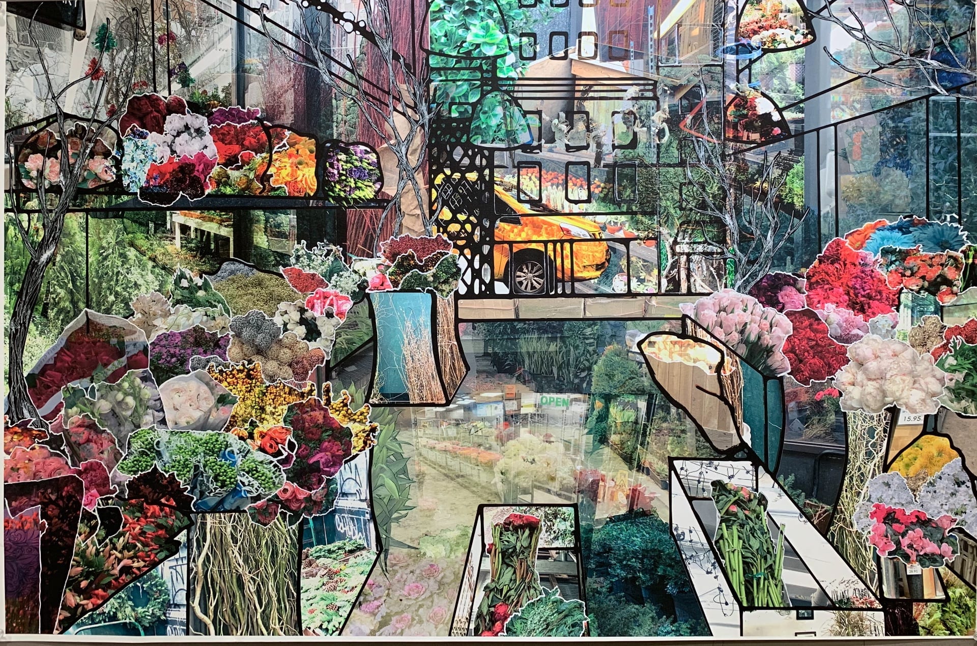 We were required to create an artwork using both digital ways and hand drawing skills. I was inspired by flower district, a place I didn’t know existed. I went there and was very curious about what it was like next to this store or that store. One store could be a normal flower shop but the one next door could be so tropical that we forget that it is winter. I was inspired by that curiosity when I was there so I created the transparency between different layers of photos. I wanted to show the overwhelmedness I feel when I was at this place and how the color could feel too much yet it is how New York is like in my mind. The transparency and overlaying effect help show how everything is spontaneous and the next moment it could change. I wanted to show the unsureness, spontaneity, and also the excitement this place.