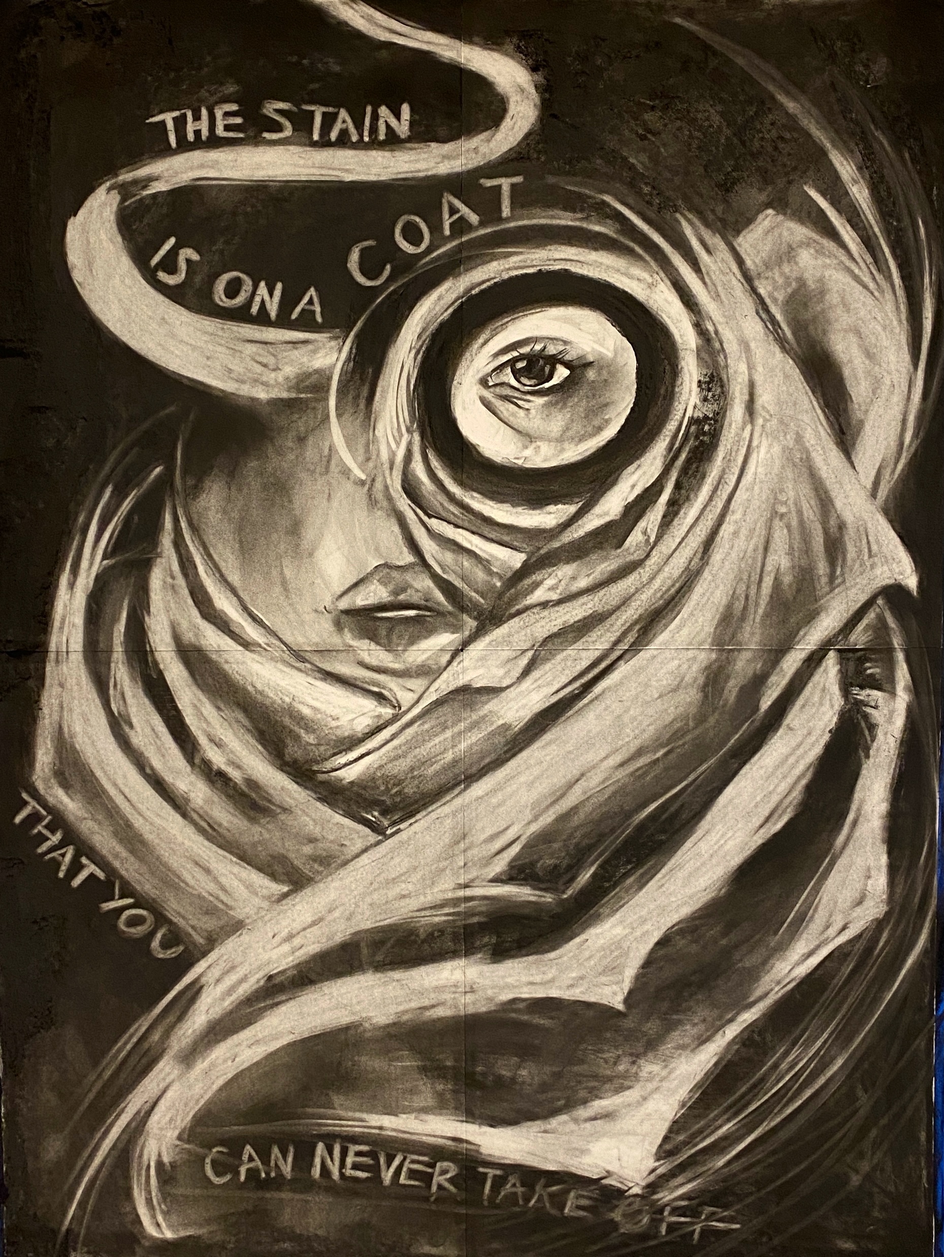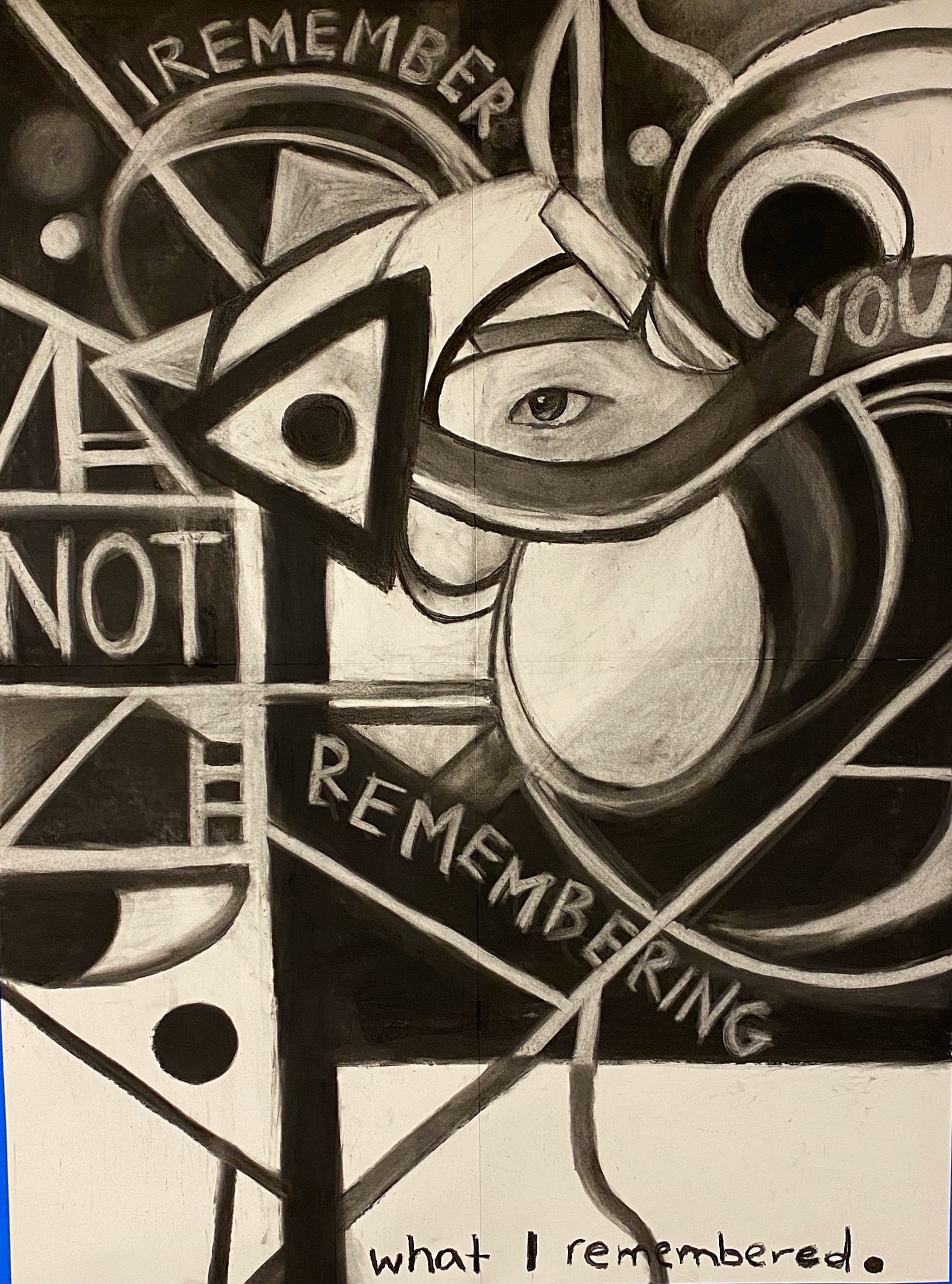 For my own portrait, I wanted to capture myself at the present. I was inspired by “Portrait of A German Ocer” by the modernist artist, Marsden Hartley. I have been doing a lot more works recently that are inspired by cubism and modern art and I wanted that to also be reected in my self-portrait. I wanted to use charcoal because I felt that it would best enable me to create value in the different geometric shapes and would allow me to constantly manipulate my work.