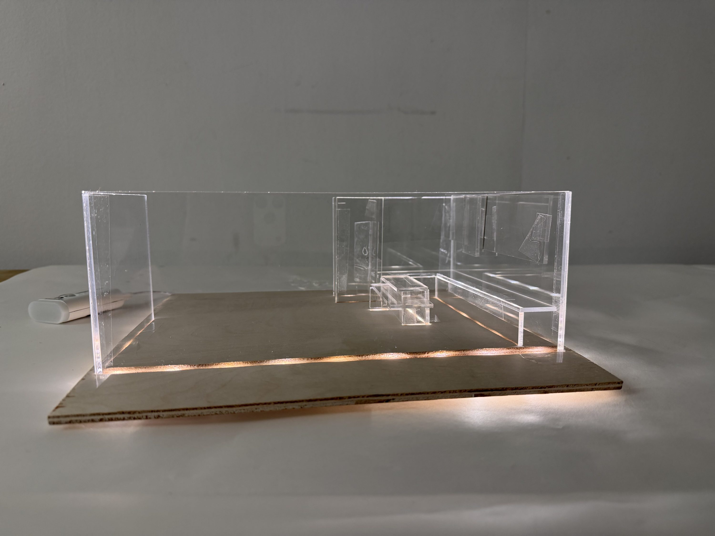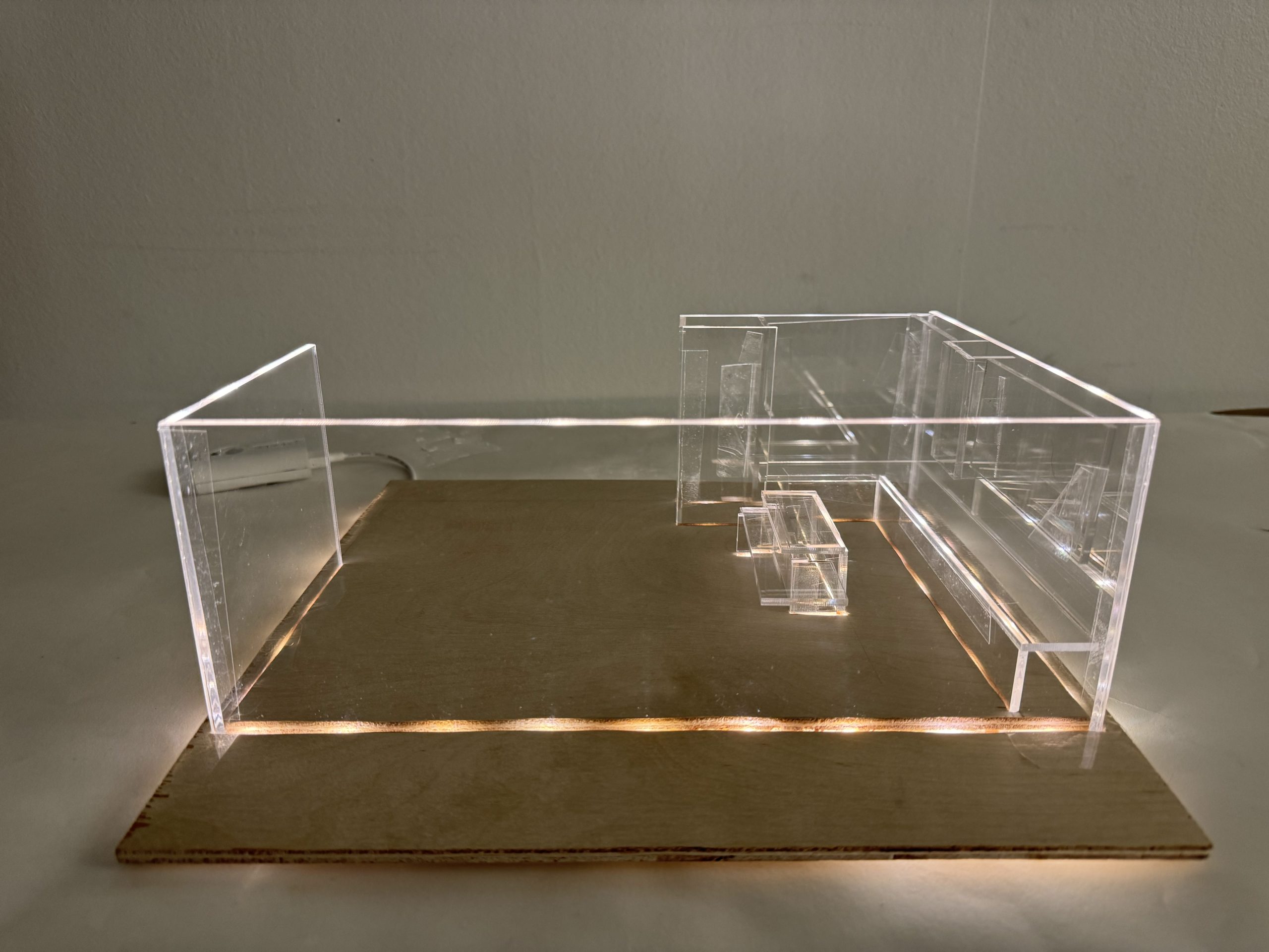 Medium: Sculpture, plexiglass, LED strip lights, 3D Modeling, wood