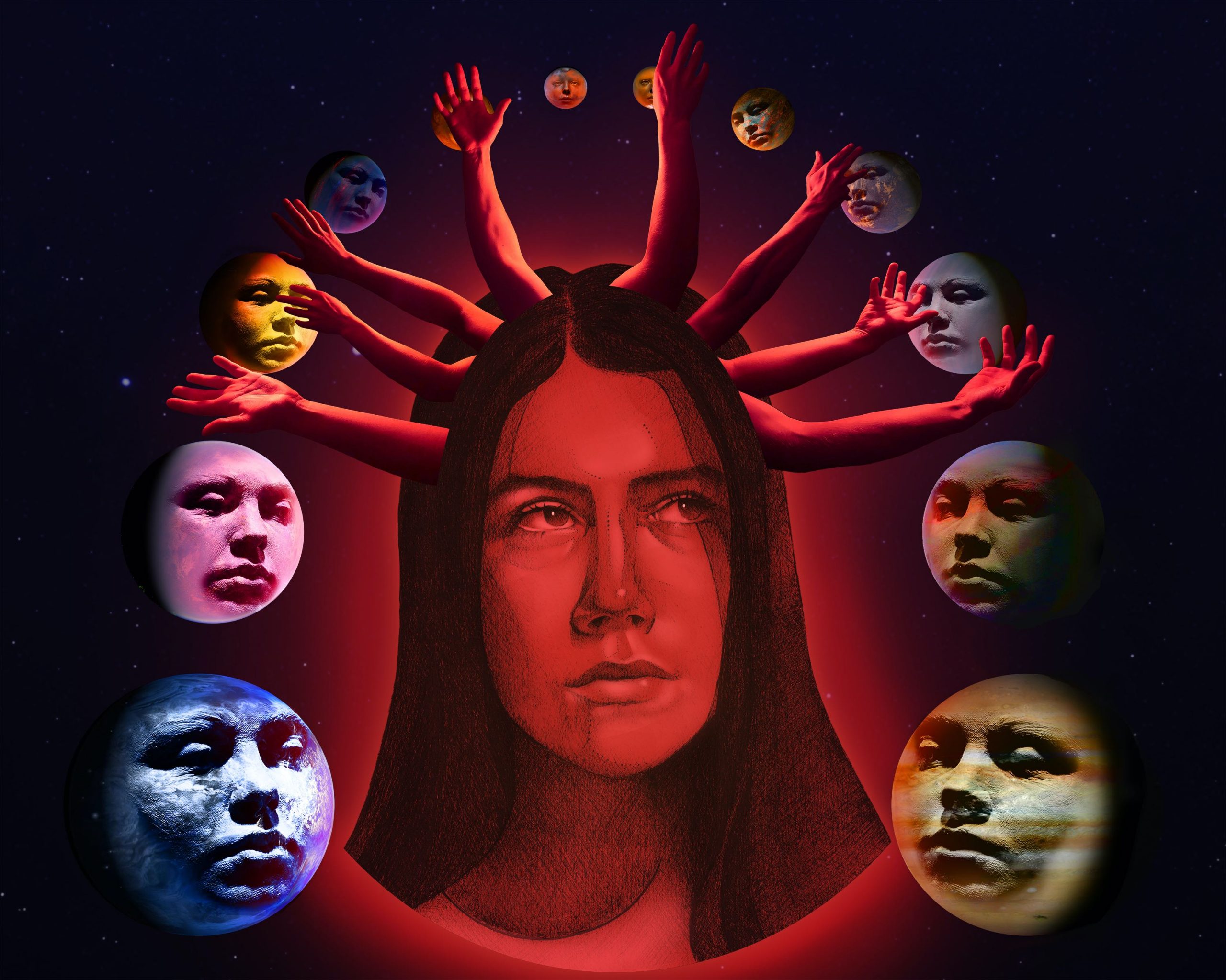 Since the assignment was titled, “Synthesize This: A Time When My Understanding Of Something Has Changed,” I decided to revert back to a time when I felt alone, and then later realized that I am never truly alone. Ubiety depicts me situated within space surrounded by several planets, which represent those who are around me. I have chosen to portray myself with several arms coming out of my head as well, as if I were blindly reaching out for those planets and missing them. This project really pushed my creative limits. I have only worked with ink previously; including photography and photoshop in this piece was out of my comfort zone. However, I feel as though both of these methods, analog and digital, really brought my personality out in this piece.