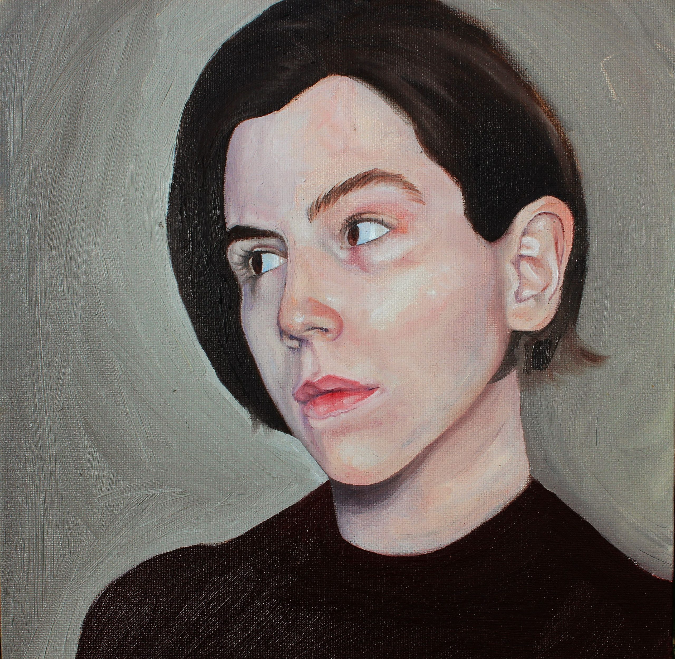 I took more of a “study” approach for this second project. I have not worked with oil much in the past, so I decided to challenge myself with this portrait. I originally planned for this to be a very quick project, where I would have just blocked in major shapes and values with my paints. I ended up getting very detailed and precise. I have messed up my proportions several times, and so I had to go back and paint over what I already had until it looked right to me. I eventually became completely immersed in this project, and I believe that in the end, the portrait is an accurate representation of the bare me.