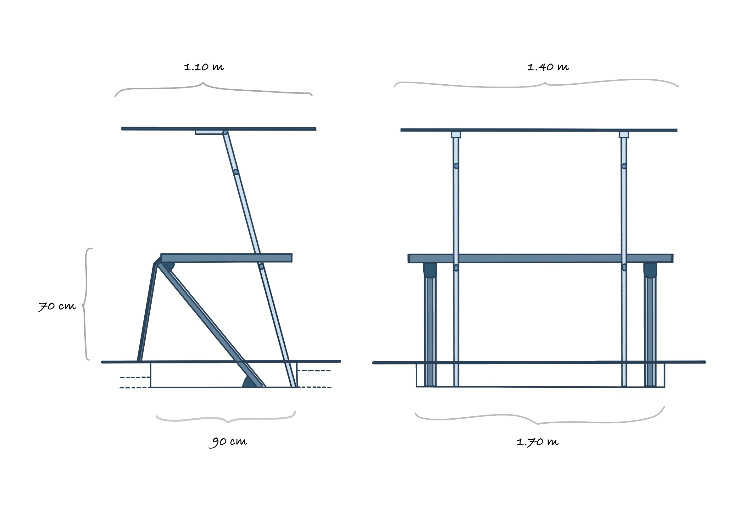 In a way to provide opportunities for the community to interact and have more sidewalk life, my project creates a type of collapsible table for street vendors to use on the streets of Jackson Heights. Since the lack of space is a problem around the streets of the neighborhood, this table will fold into a compartment in the floor, using space efficiently when no one is using it. These tables will be scattered around the main area where the different communities interact: Roosevelt Avenue.