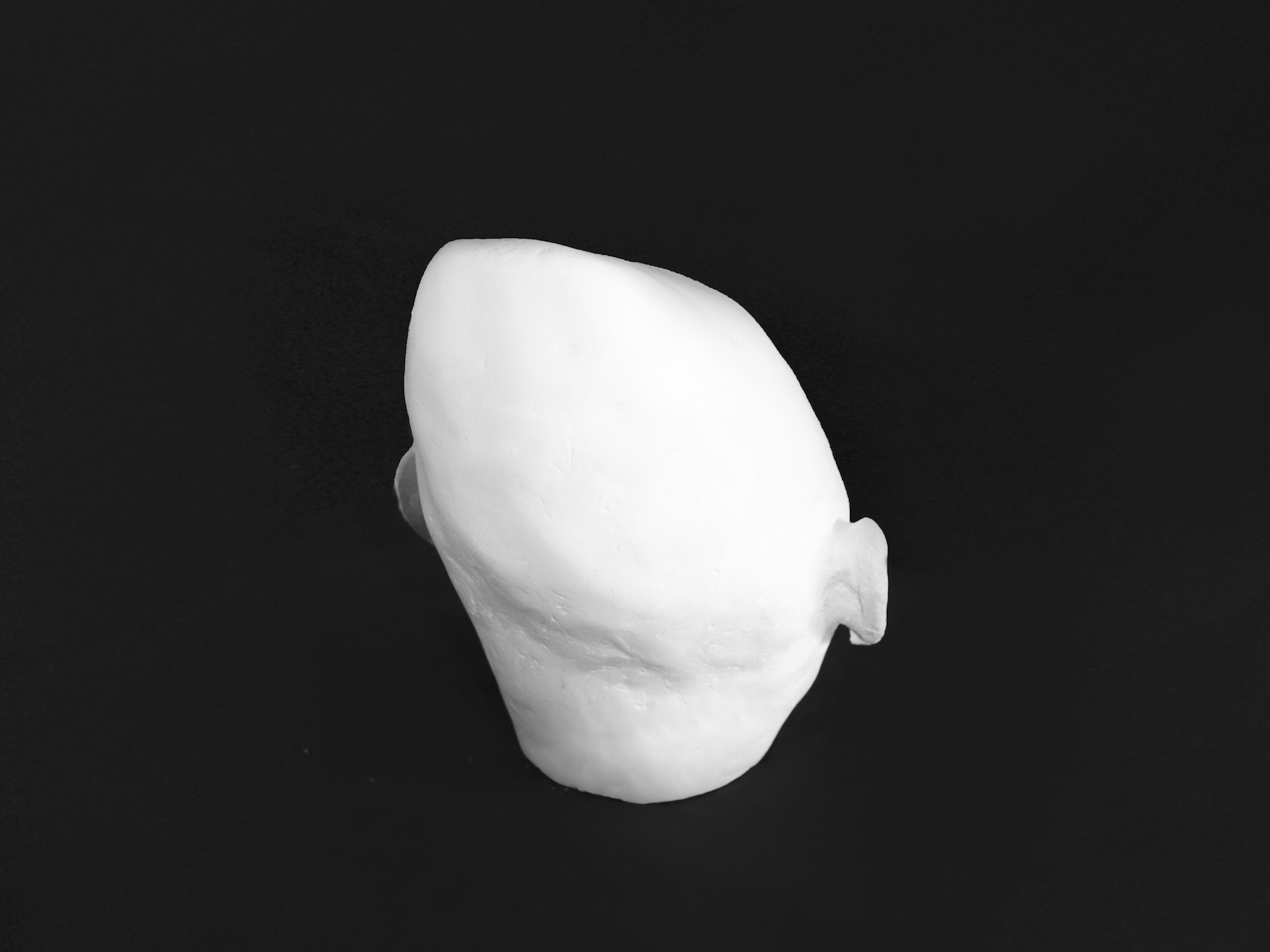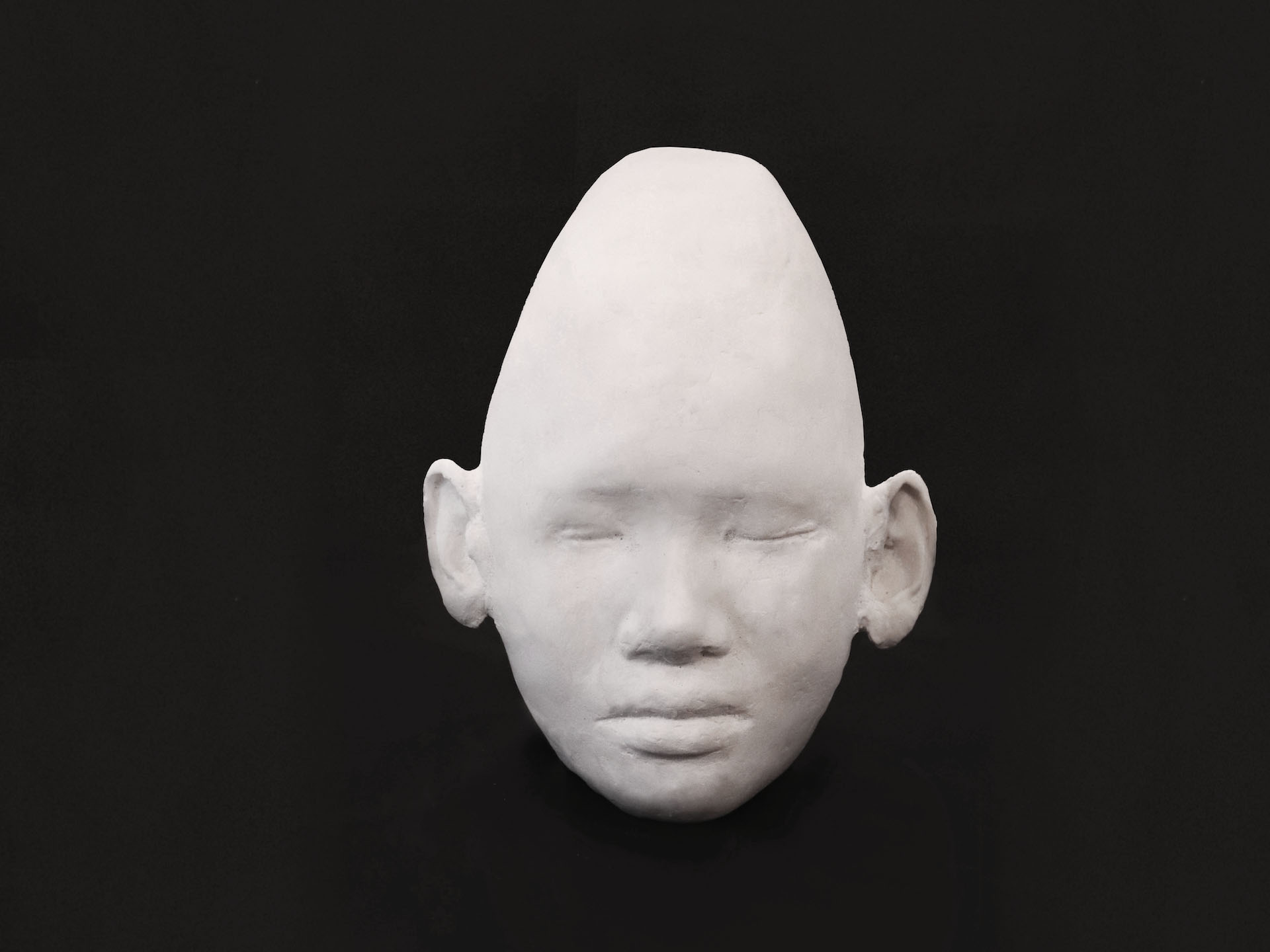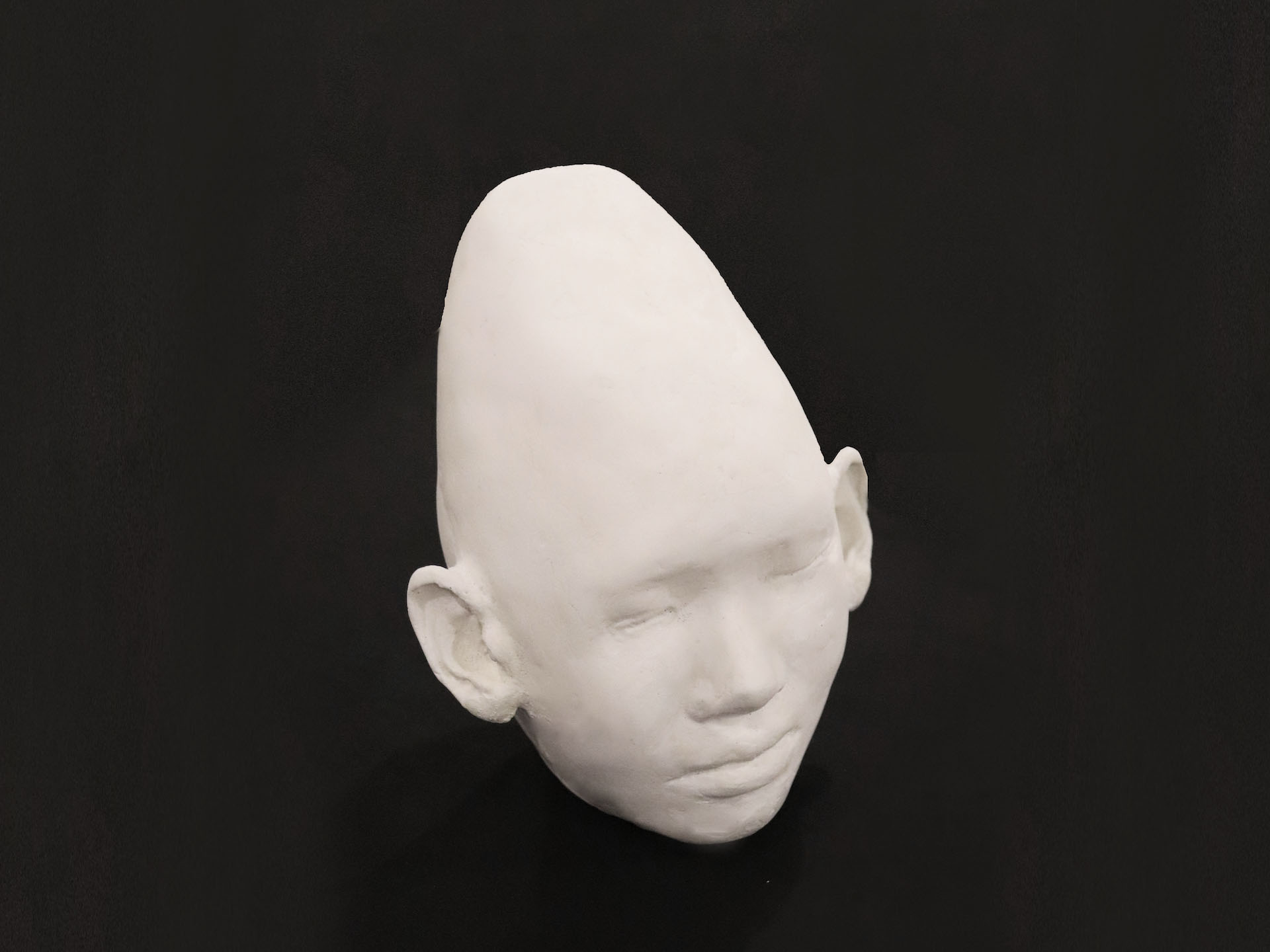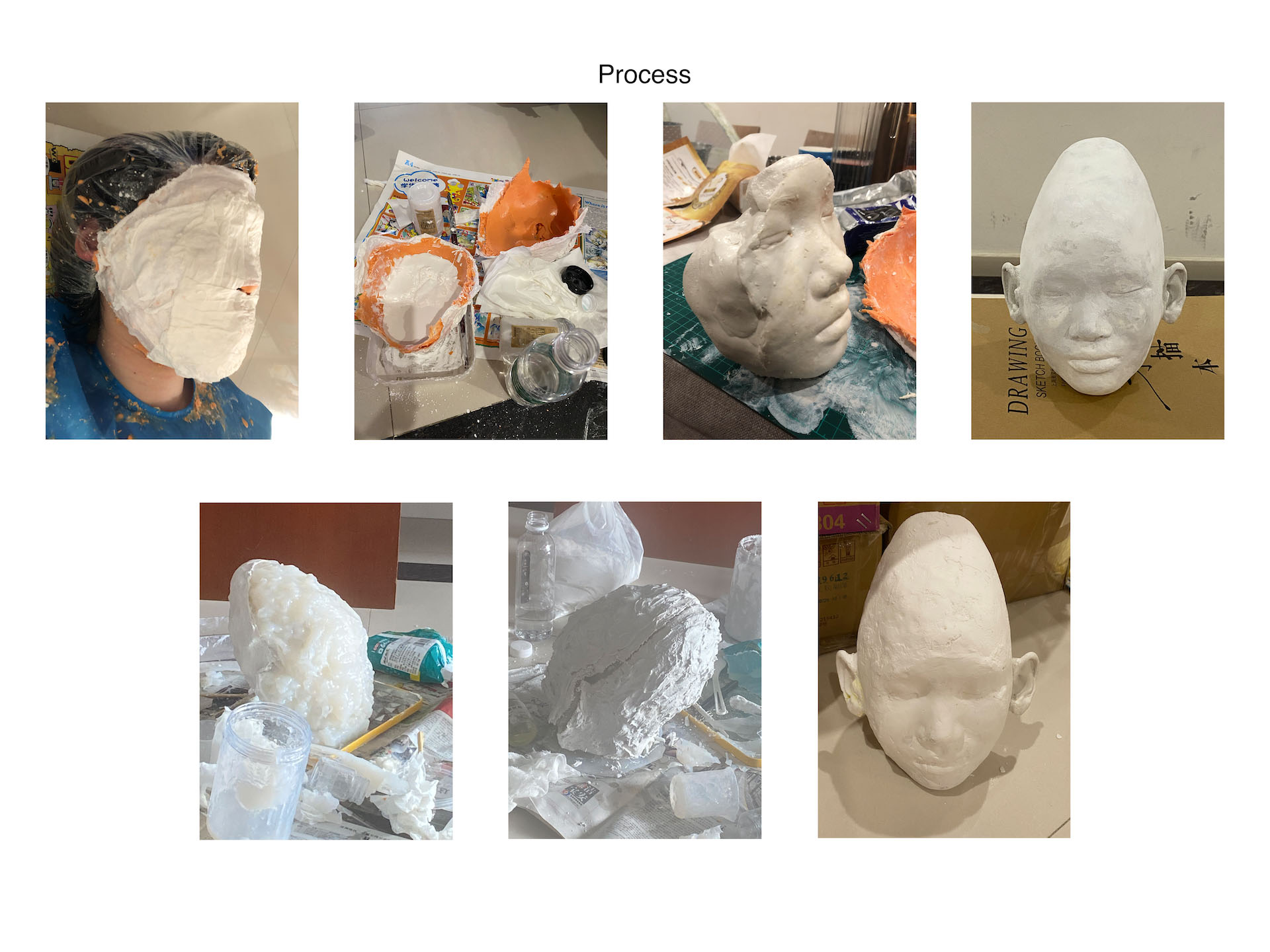 The inspiration for my headpiece came from the culture of letting newborn babies sleep on hard pillows to change the shape of their heads. I was one of those newborns, so the shape of my head is sharp and abnormal, and I can hardly accept it. This is a difference in aesthetic standards between people of my generation and the last generation in my culture. The sculpture is an exaggerated version of my head. I am making it to show how the deformity of aesthetics.