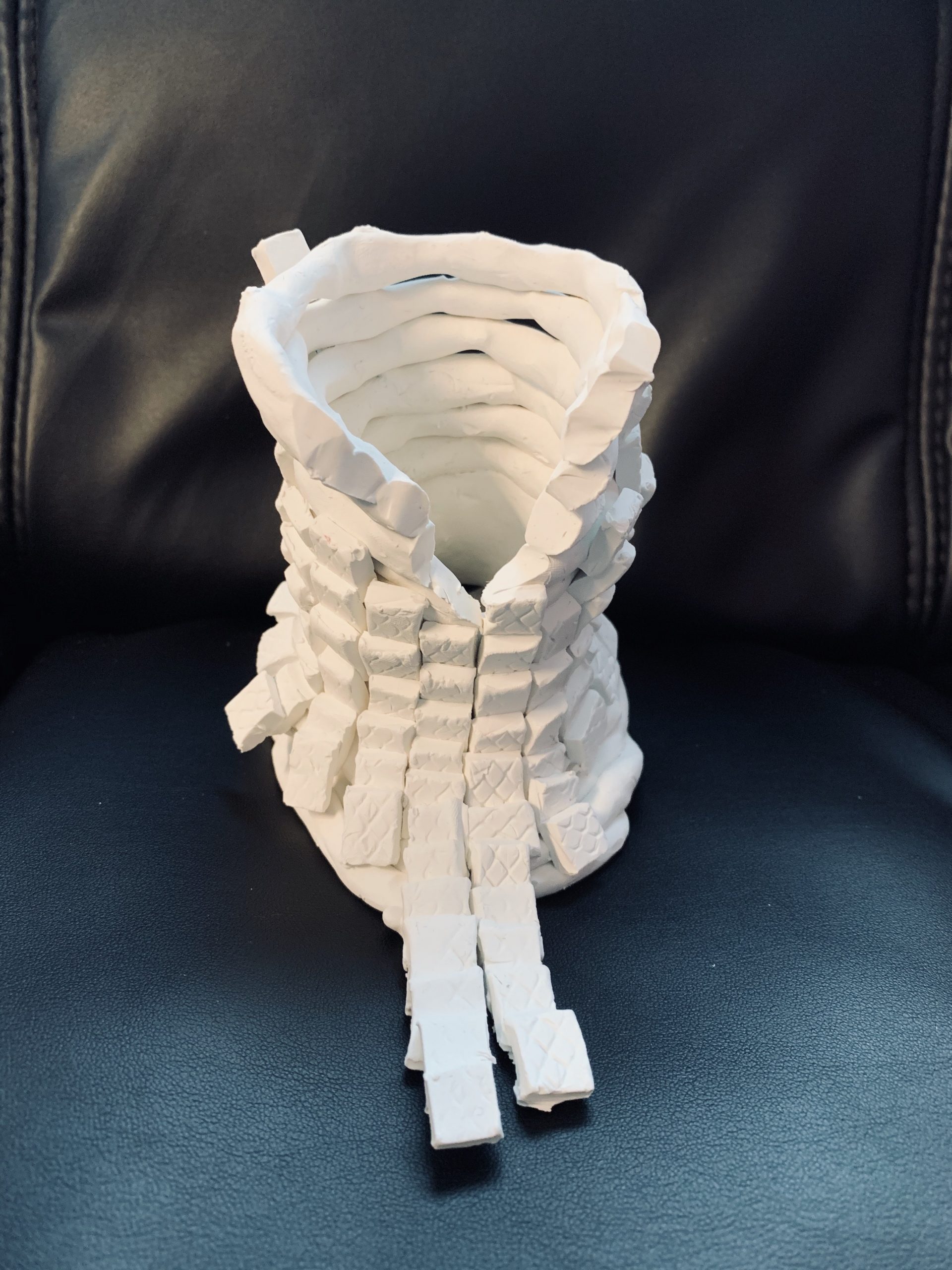 Prompt: Inspired by a specific type of architecture, create two clay structures by using repetitive elements.