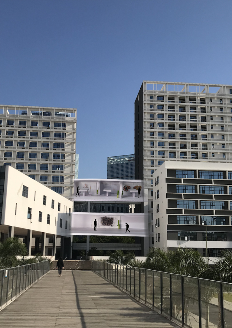 By creating a foam model, I try to interpret the functions of buildings. Can a building be a connector between other buildings? What roles can the connector-building have? I use two teaching facilities in Shenzhen University as the site, discovering how I can build another one to connect them. On one side is the liberal arts building, and the other side is the science department, which means that the primary users are students who need to shuttle between classrooms and facilities. So, I create a passageway that saves students’ time in changing classrooms while conserving sunshine to the corridor from the skylight. Meanwhile, I design another block with three little conference rooms, providing students from different majors a space to meet and communicate.