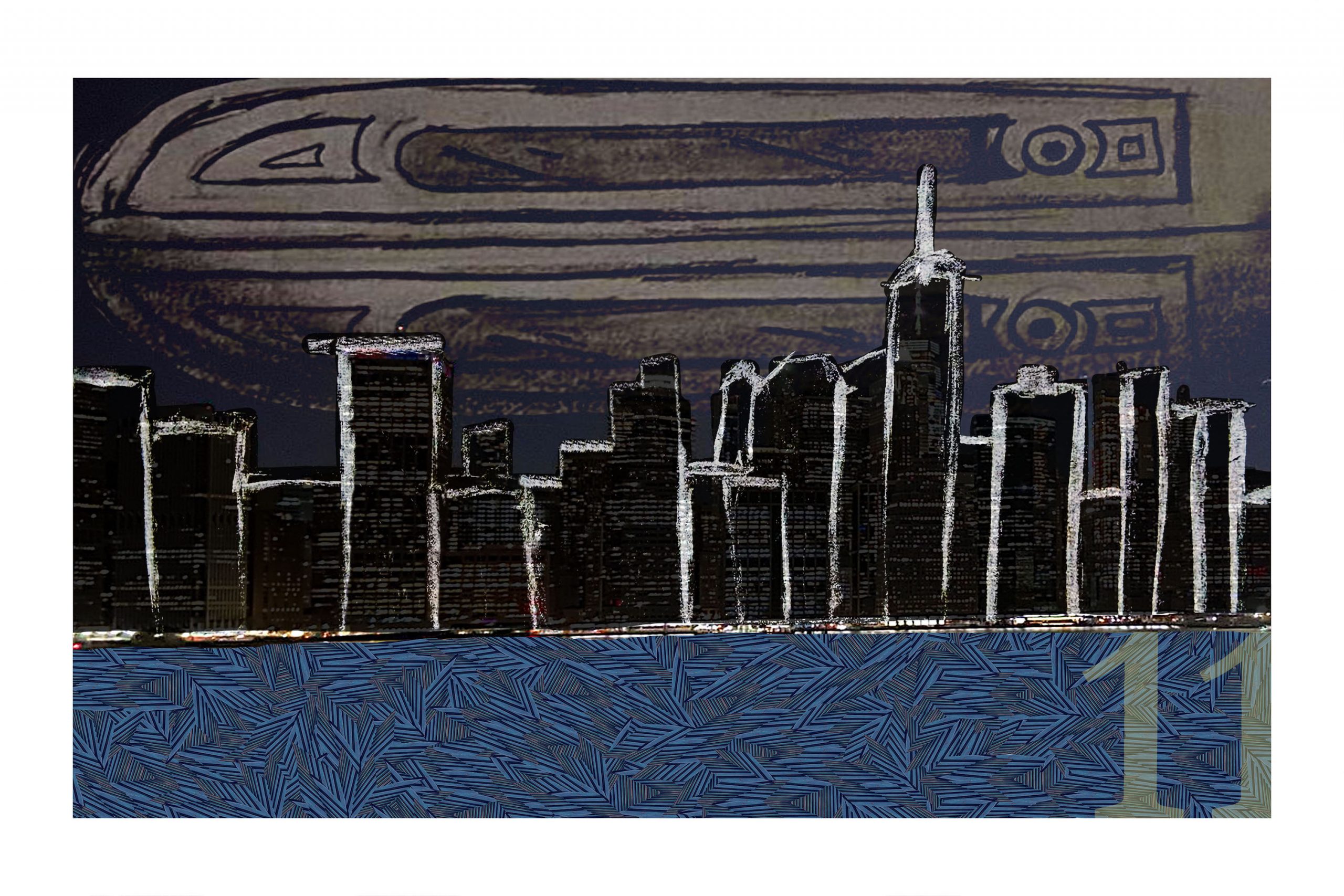 The door is in the sky, to signify it’s importance to me personally. The skyline is made of Charcoal and the water is made from the edited stoop image from the front of the old brownstone.