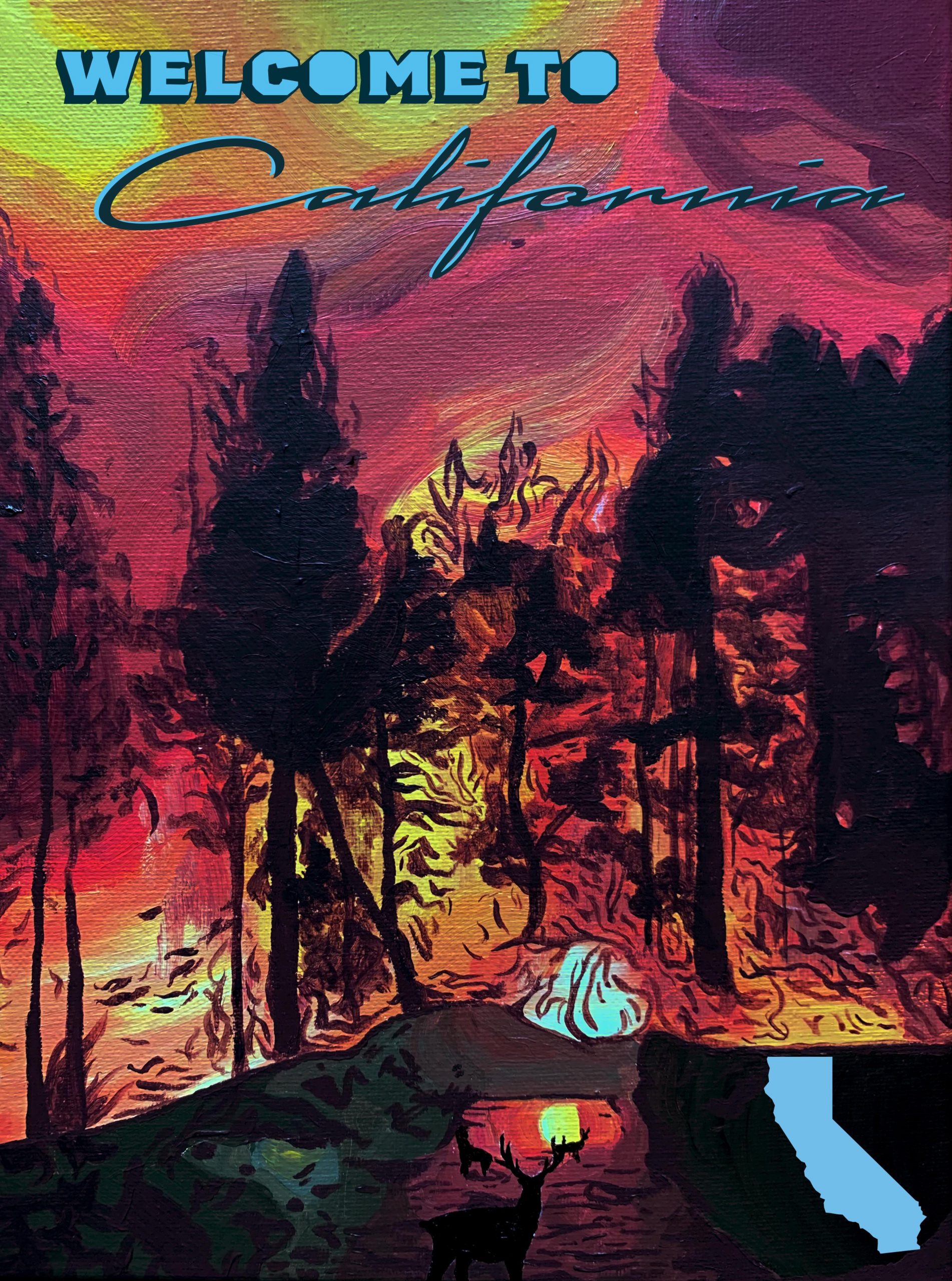 When we were first assigned this project I had many ideas on what to do but after thinking about each one I chose a subject I wanted to shed more light on. This semester I am also in Sustainable Systems with Professor Kennedy and I have learned so much from him in such little time. He allowed me to open my eyes to the drastic changes happening in our country and the rapid effects that are coming with it. So for this project I wanted to dedicate my posters to a theme that needs to be talked about more. Usually, when you see a state poster or a welcome sign it shows a perfect picture of the state and its natural beauty. Yet, I wanted to show the truth, the true natural disasters that are happening more and more often due to the increasing rates of global warming.