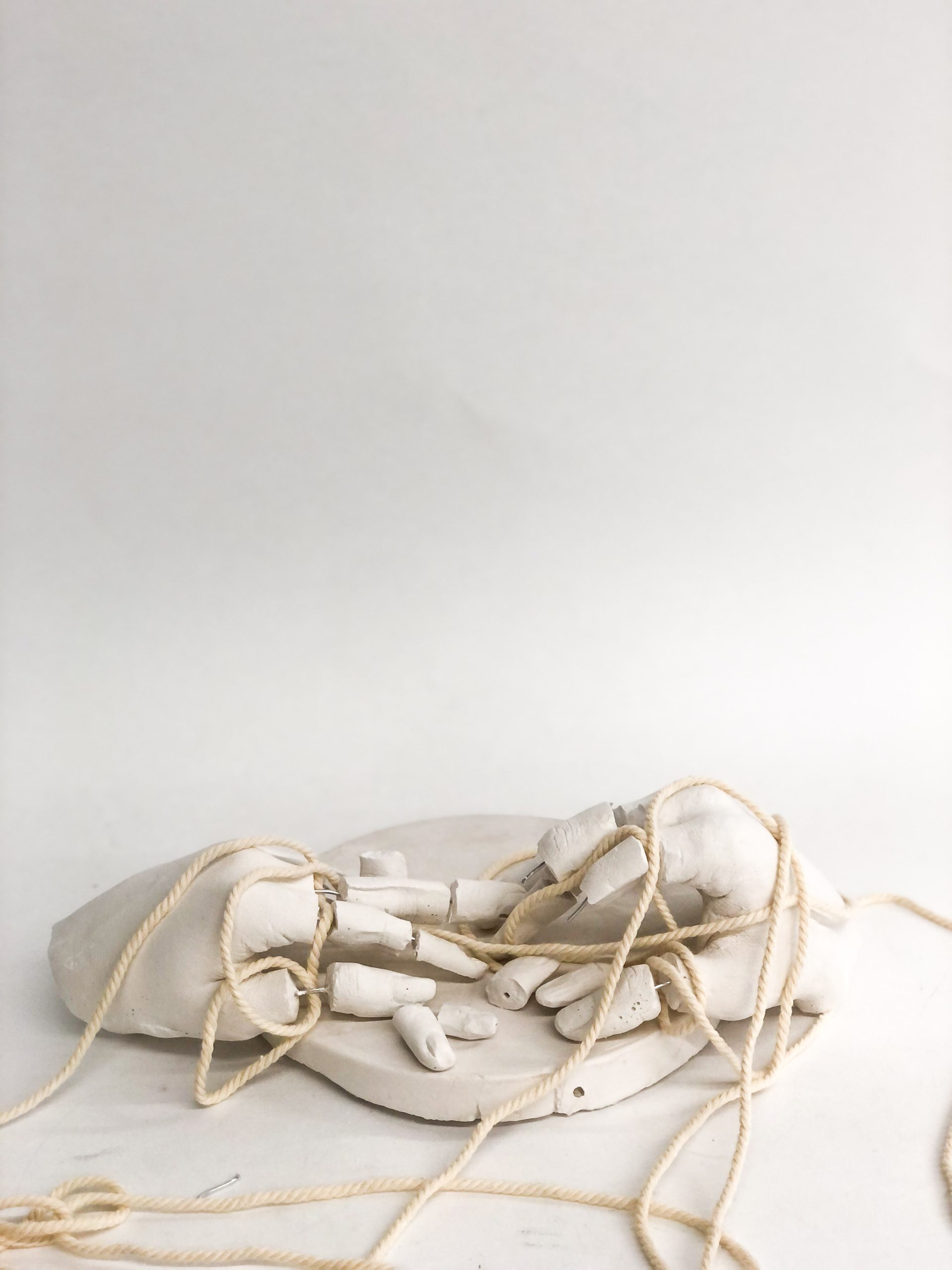 Through this piece I wished to illustrate that one must accept that things change and evolve..we need to learn to embrace them. As they say, we grow through what we go through. What you see in my piece below is the story of a puppeteer and his need to constantly “fix himself”. He is struggling with his identity, trying to pick apart each flaw. What he doesn’t realize is that his biggest imperfection is his need to be perfect. That feeling is so forceful that it crumbles him. The first image shows the broken pieces, laid out with rope and wire, ready to be fixed. A sort of “workspace”. I wanted to depict the beauty that lies in piecing the puppeteer back together. I have related this progression to Kintsugi, the Japanese art of repairing broken ceramics not by trying to hide the cracks but by embracing them and creating something even more beautiful. I hope that I was able to illustrate that everyone is imperfectly perfect, a collection of flaws and strengths creating our own unique identity.