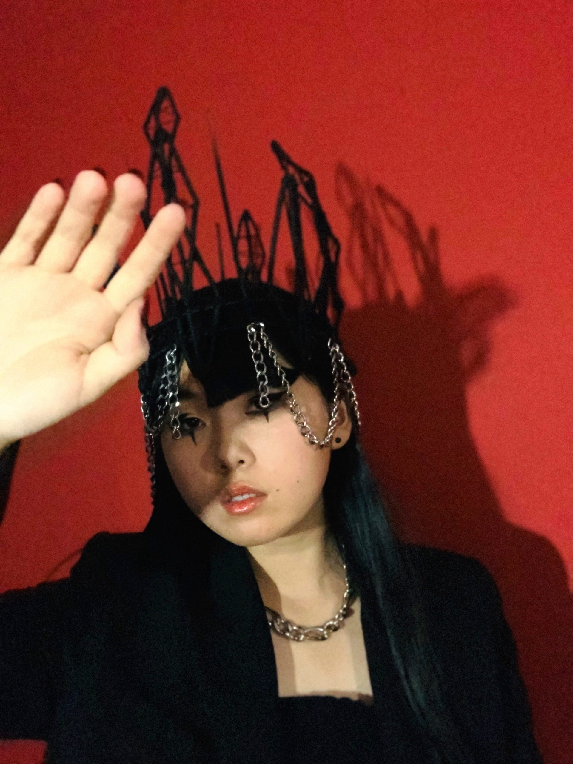 The main part that helped my process with this project was to research both an animal and a word that I could reference when building the crown. I took a lot of inspiration from the Emperor Scorpion, which is a beautiful scorpion who’s exoskeleton is black and red, which helped me decide how to shape my pieces and revolve my colors around. This was crucial to create the pieces of the crown that used geometric shapes.